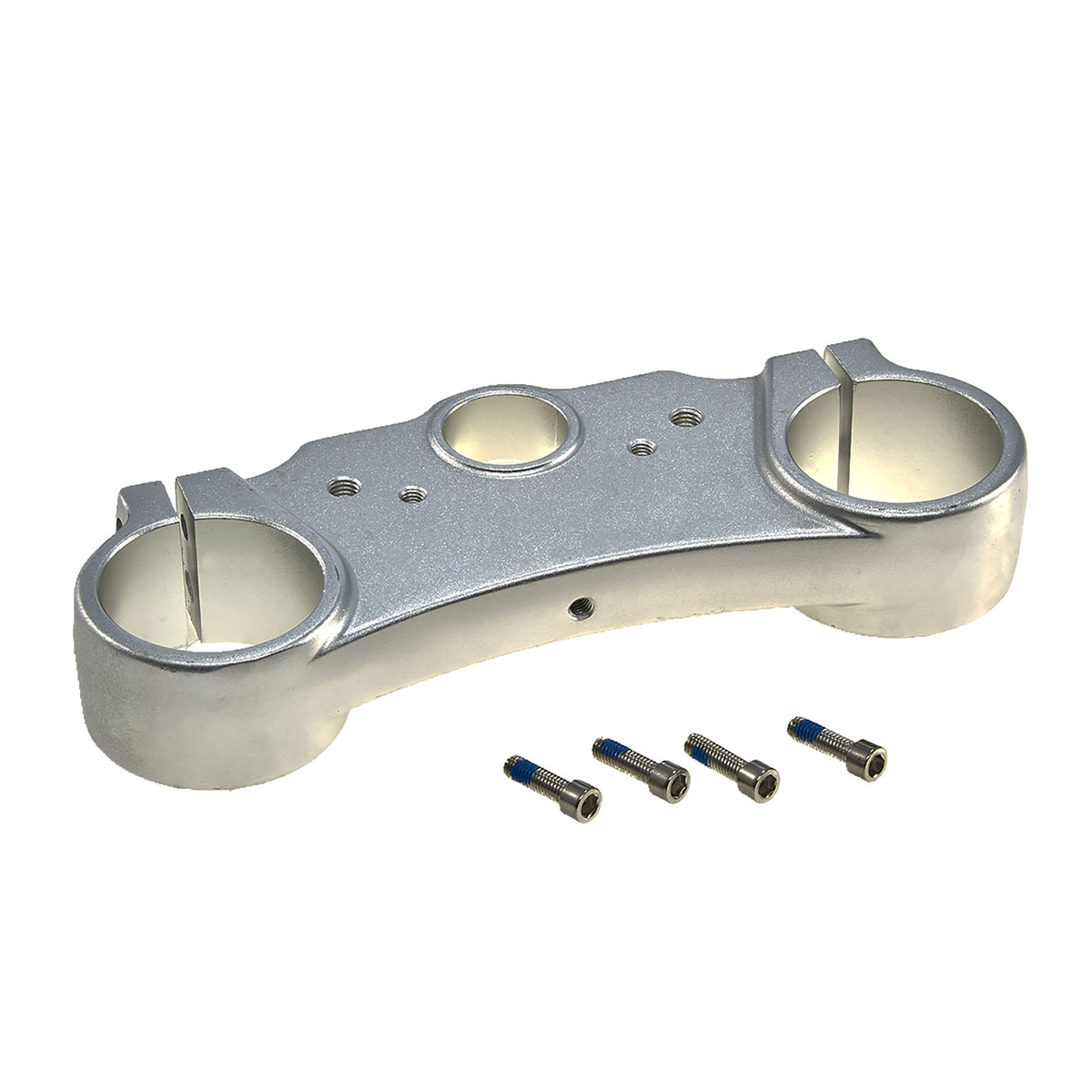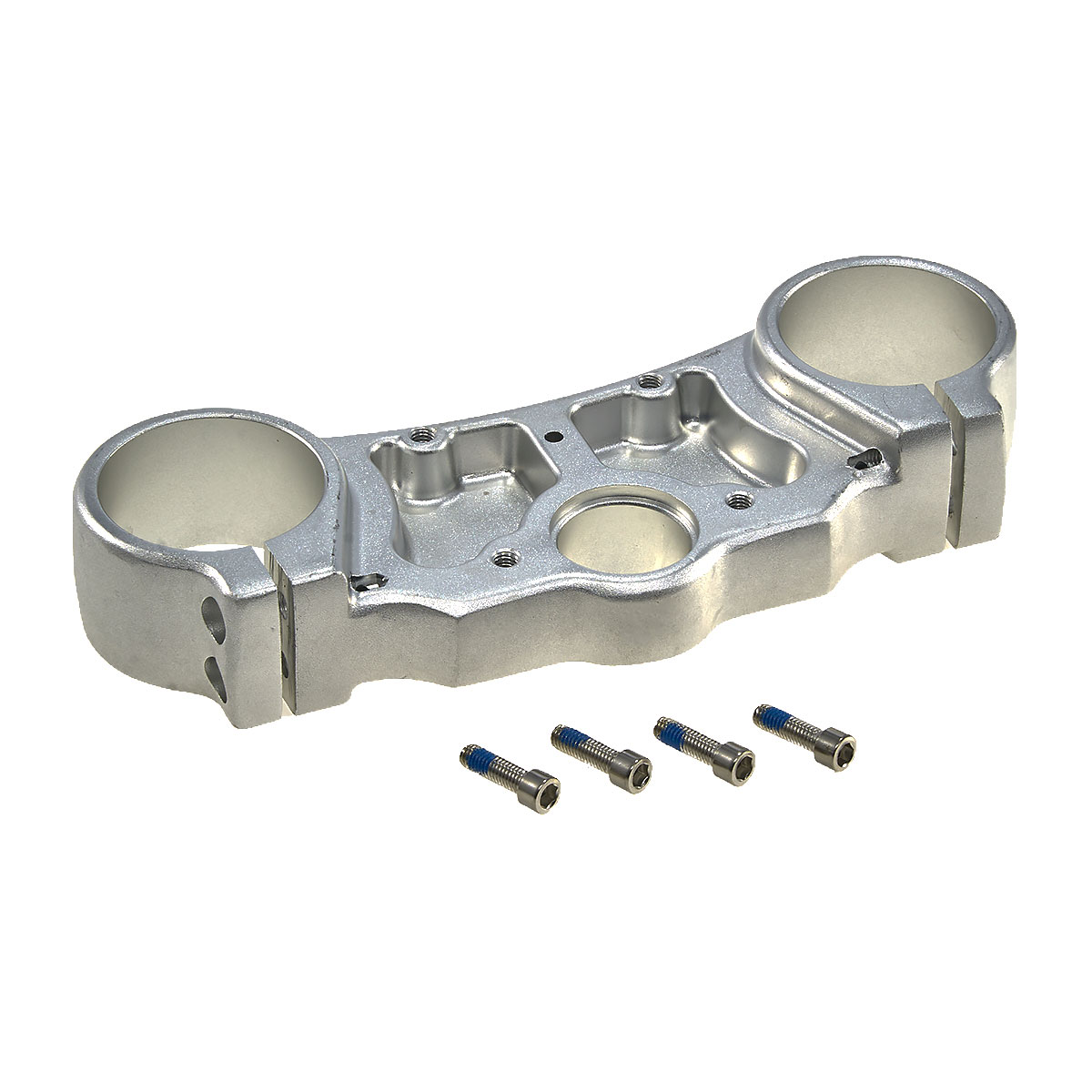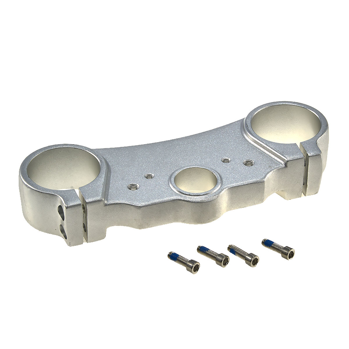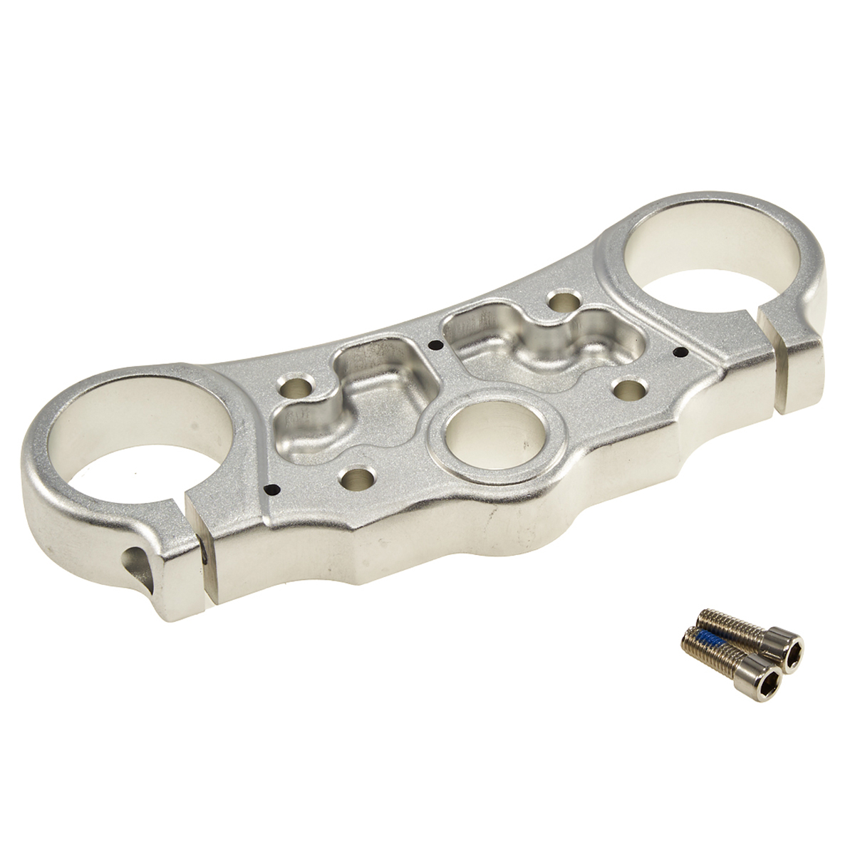 - • Надежный сплав: Прочный алюминиевый сплав отлично сопротивляется скручиванию на излом при падениях и жестко удерживает перья вилки, обеспечивая стабильность на высоких скоростях.