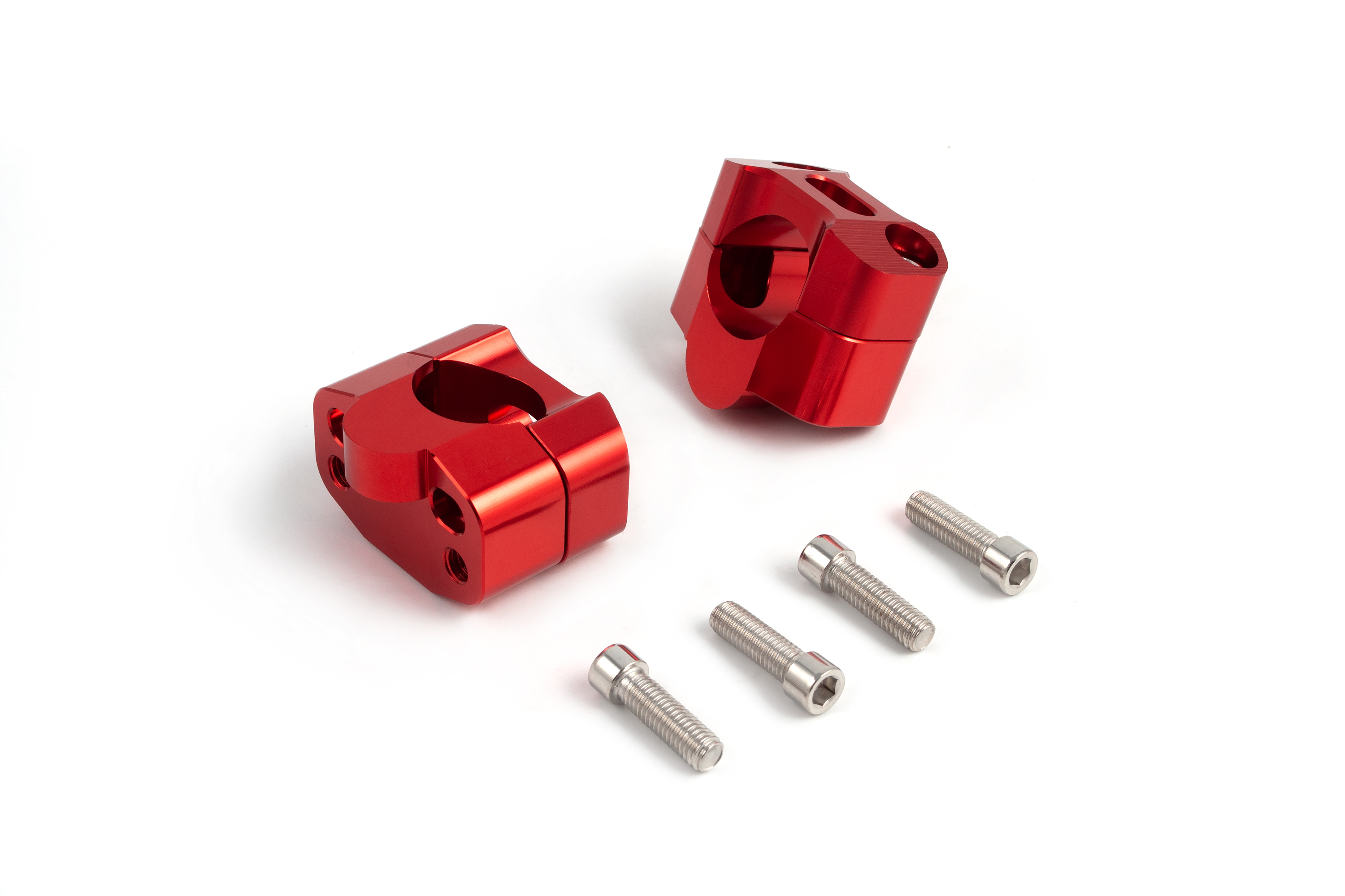 - Комплект переходников (проставок) красного цвета для установки руля диаметром 28 мм в стойки руля диаметром 22 мм. Выполняет двойную функцию: адаптирует посадочный диаметр и поднимает руль на 20 мм, улучшая эргономику управления. Идеальное решение для эндуро мотоциклов и питбайков.