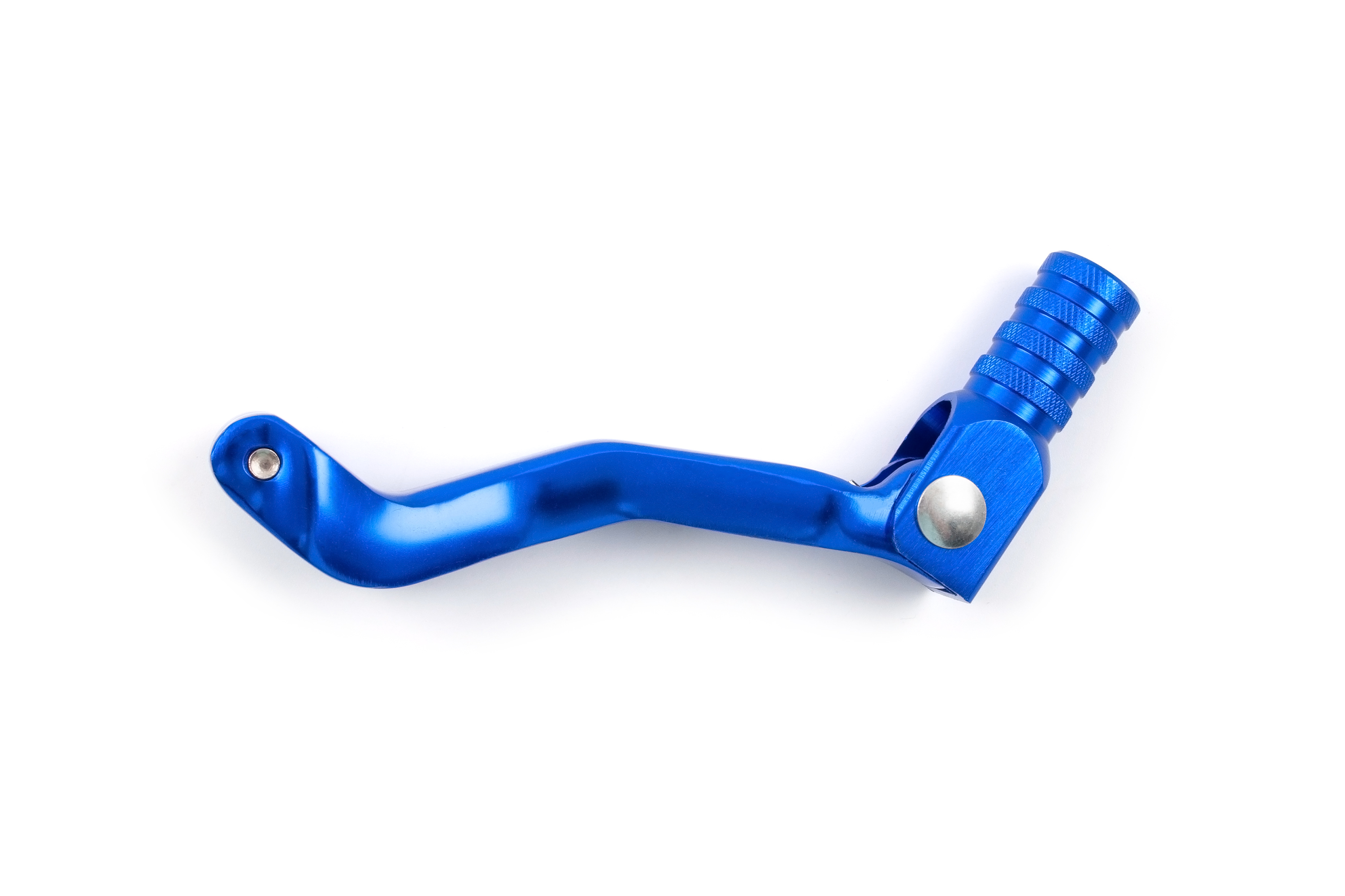 - Алюминиевый складной рычаг переключения передач синего цвета для эндуро мотоциклов с двигателями 165-172 FMM и 174 CBS-NB. Изготовлен из литого алюминия со складным кончиком, который предотвращает поломку рычага при падении или боковом ударе. Универсальная конструкция с вылетом, не гнет вал при падениях. Установка без втулки. Совместим с двигателями 165FMM, ZS170MM-2, ZS172-3A, ZS172-5A, ZS174MN-3.