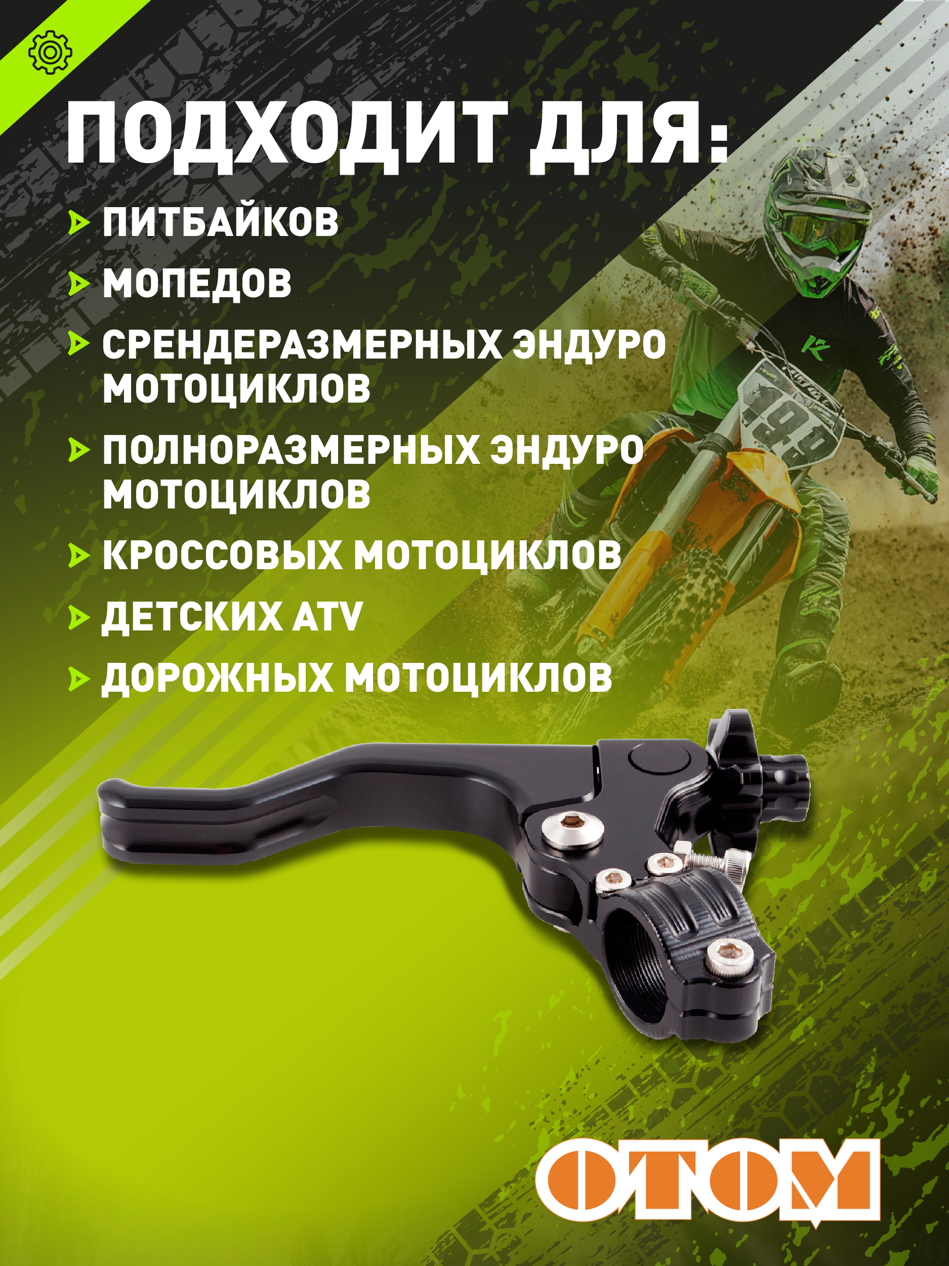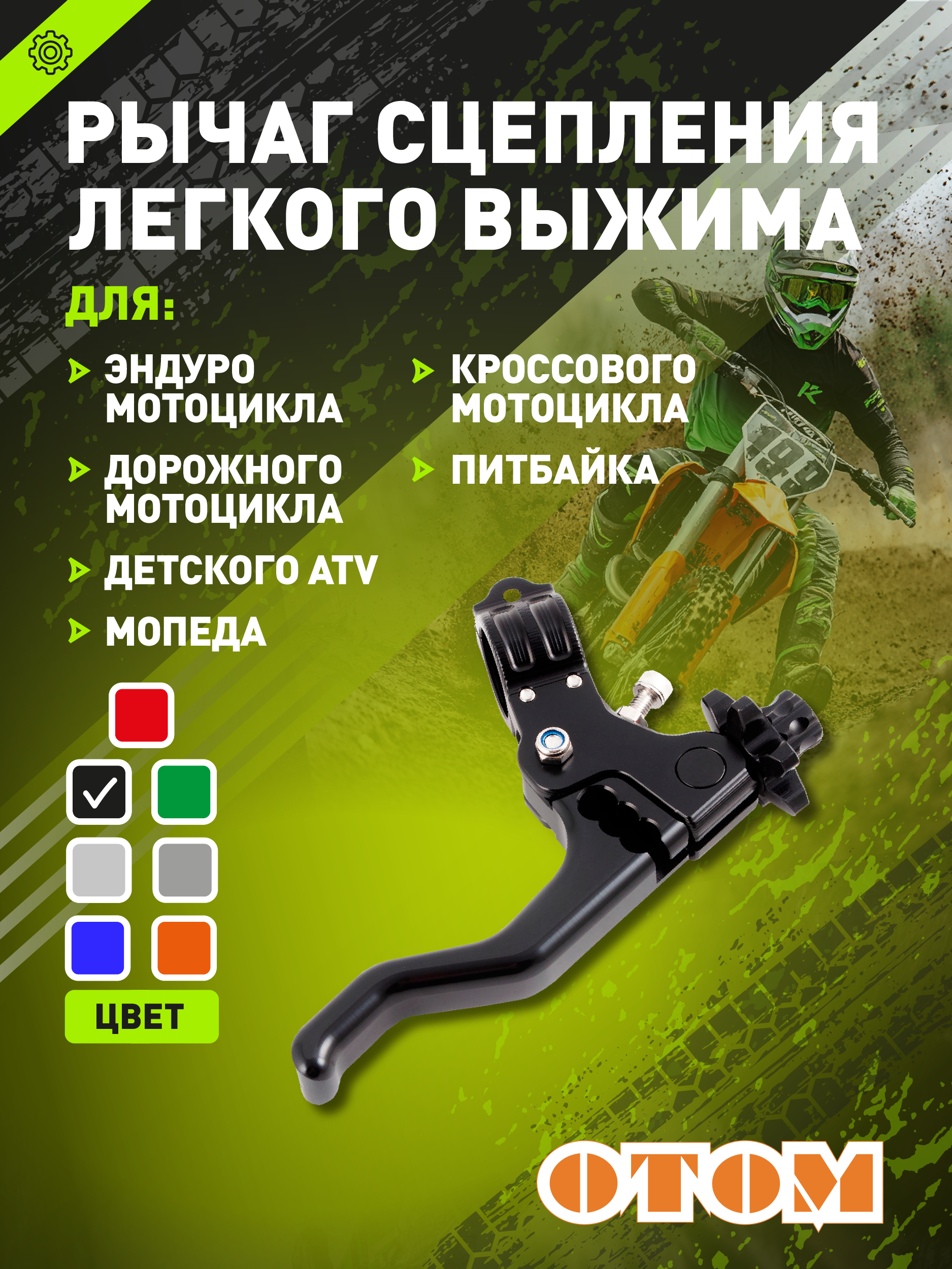 Универсальный рычаг сцепления легкого выжима, подходит для установки на питбайк, мопед, квадроцикл и эндуромотоцикл. Обеспечивает мягкую и плавную работу, что особенно удобно при длительной эксплуатации в разных условиях.