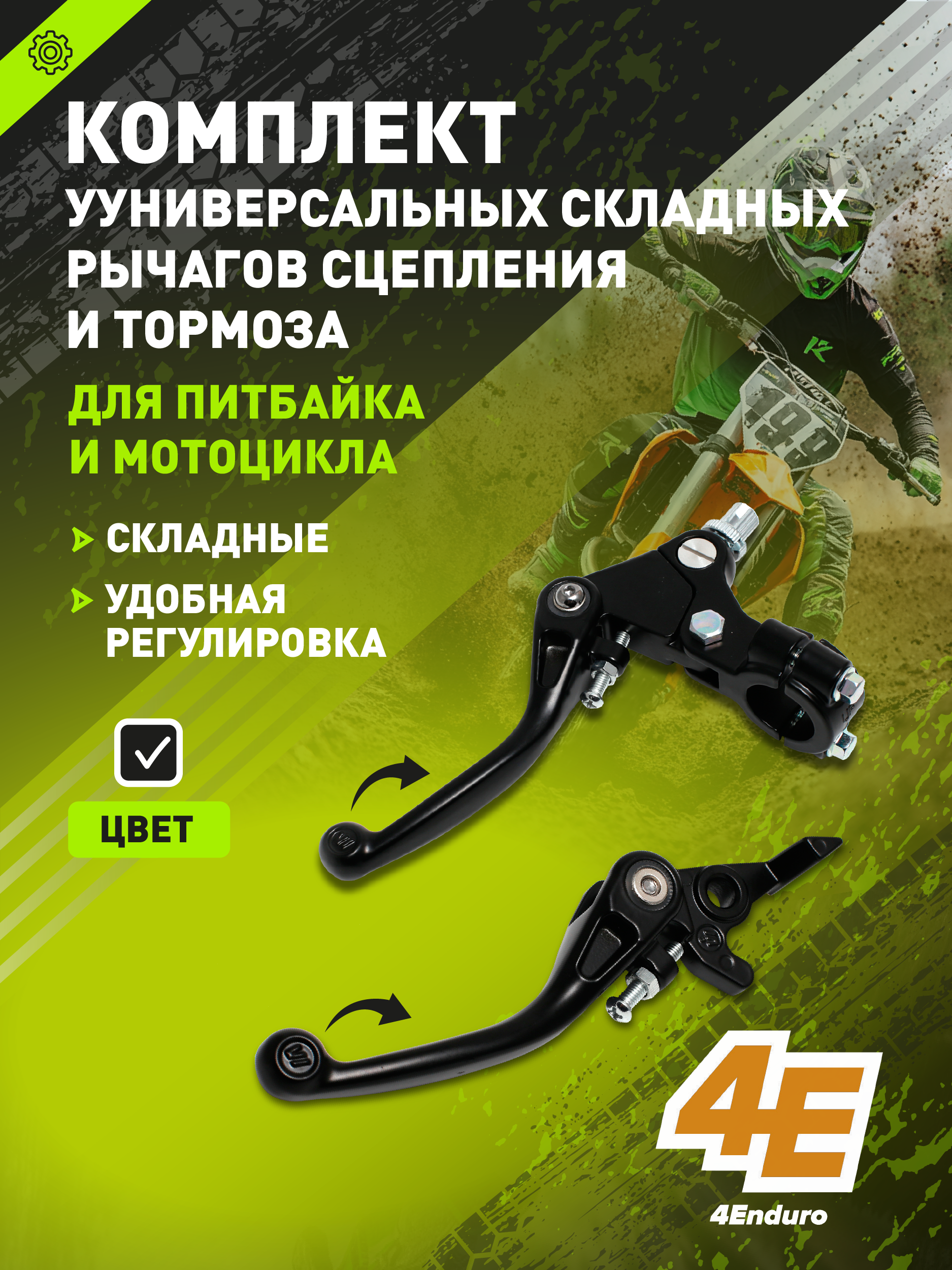 - Рычаги складные универсальные для питбайка (тормоз + сцепление)