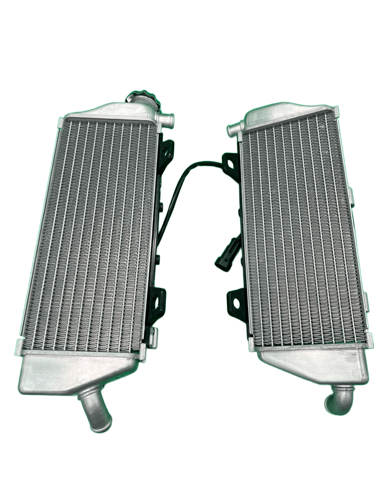 Комплект алюминиевых радиаторов для мотоциклов на раме K10 с 182 двигателем (NC300S). Обеспечивает эффективное охлаждение двигателя в любых условиях эксплуатации, подходит для замены и модернизации штатной системы охлаждения, рассчитан на интенсивную нагрузку и бездорожье.