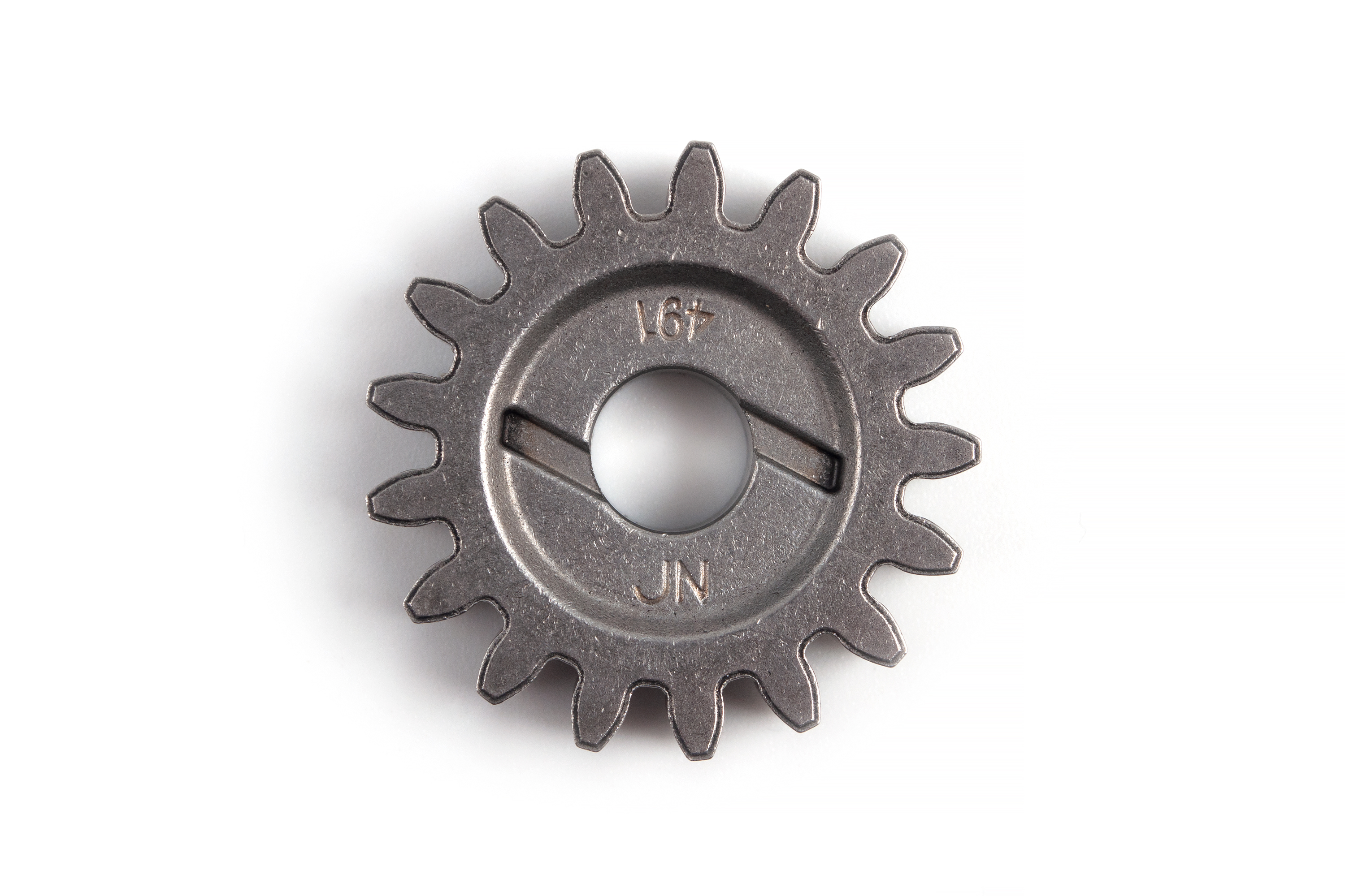 Двигатель Zongshen ZS182MN (NC300S) — это мощный высокооборотистый двухвальный агрегат, здоровье которого напрямую зависит от идеальной работы системы смазки. Шестерня левого масляного насоса отвечает за передачу крутящего момента с коленвала на ротор помпы. Износ зубьев или "слизывание" центрального посадочного паза приводят к мгновенной остановке насоса, падению давления масла и фатальному масляному голоданию (задирам на распредвалах и заклиниванию поршня). Данная шестерня изготовлена из закаленной стали, строго соответствует заводским допускам OEM и гарантирует бесперебойную циркуляцию масла при любых экстремальных нагрузках в эндуро.