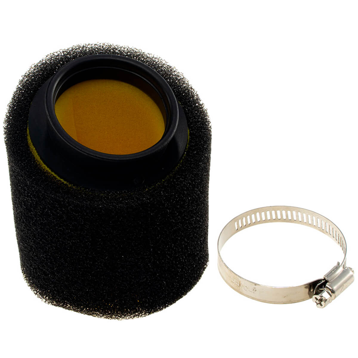 - • Двухслойная защита: Черный крупноячеистый поролон задерживает песок, куски грязи и воду, а внутренний желтый мелкоячеистый слой блокирует микроскопическую абразивную пыль, спасая поршневую группу от износа.