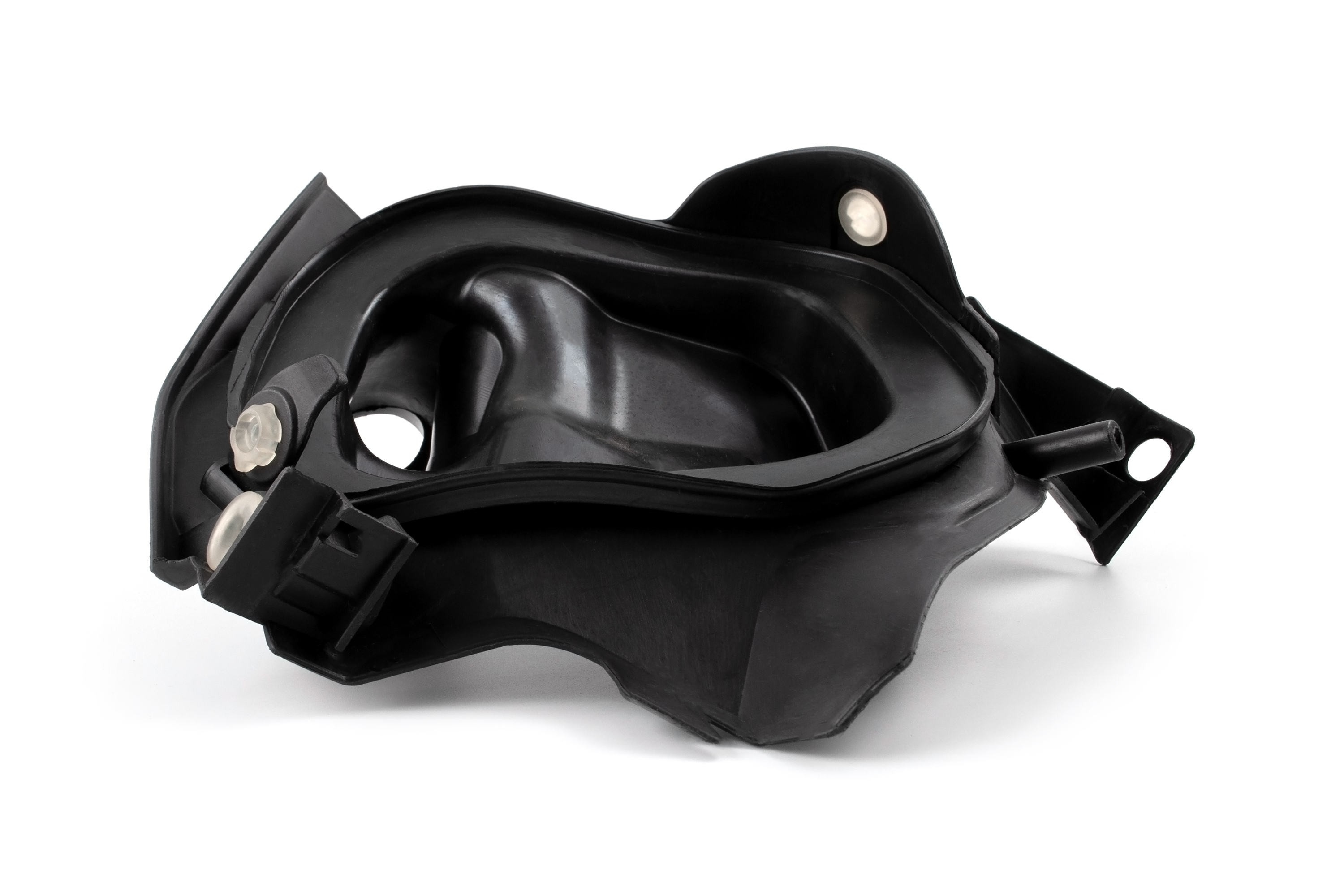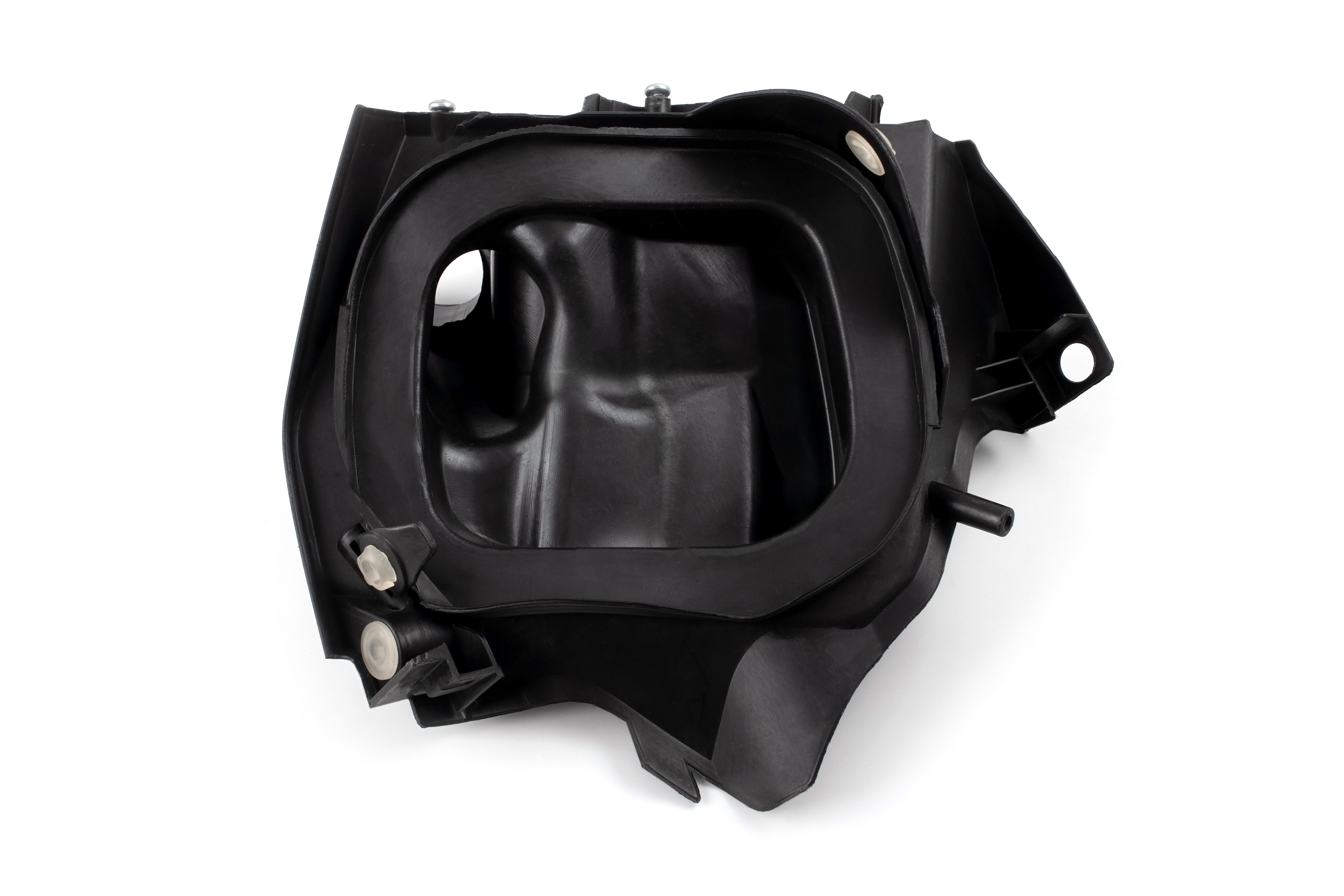 Деталь представляет собой готовый к установке модуль: пластиковая стенка короба интегрирована с резиновым манифольдом. Это экономит время и избавляет от необходимости переклеивать или герметизировать стыки деталей самостоятельно.