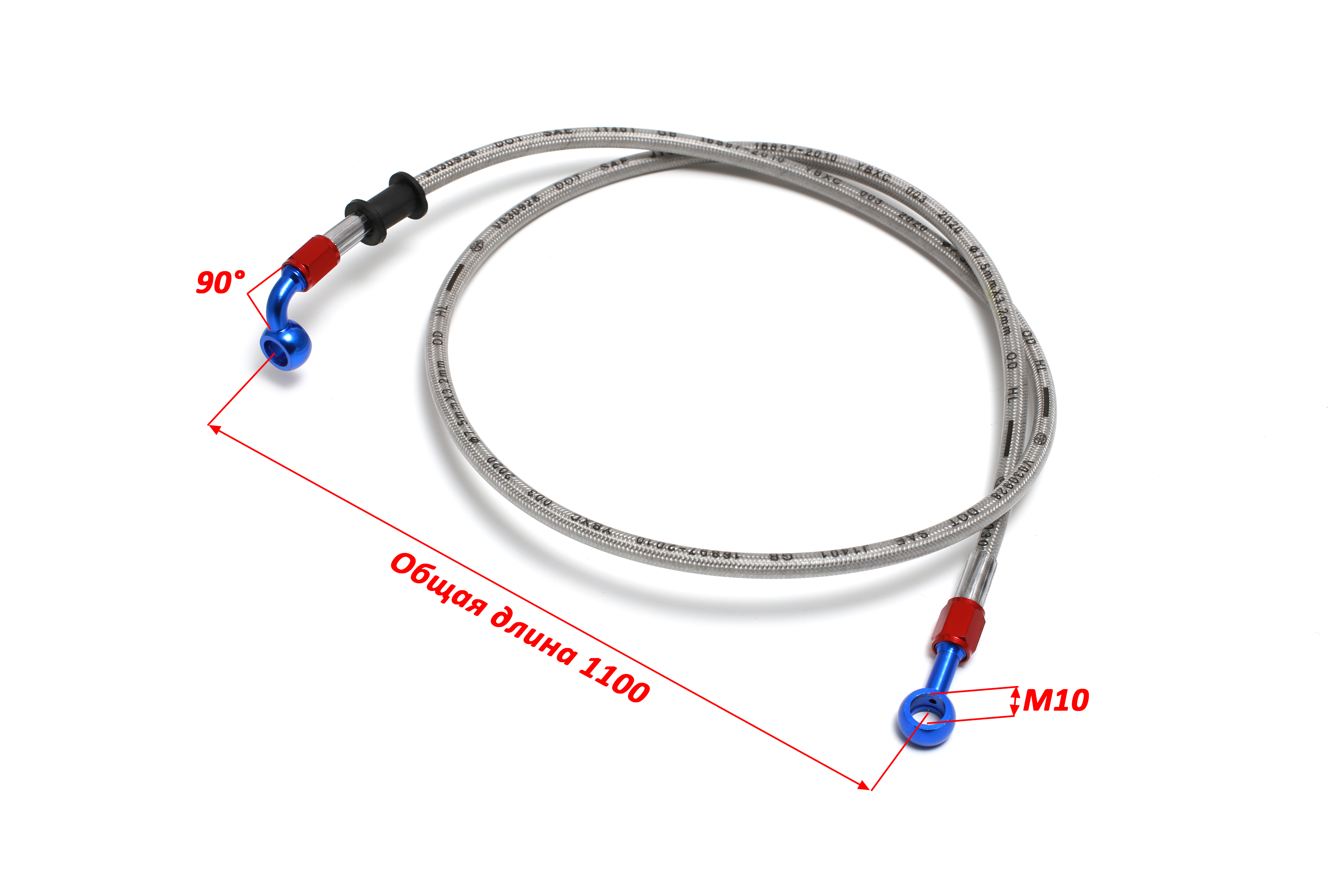 Шланг тормозной армированный L-1100 mm M10/прямой - M10/90°