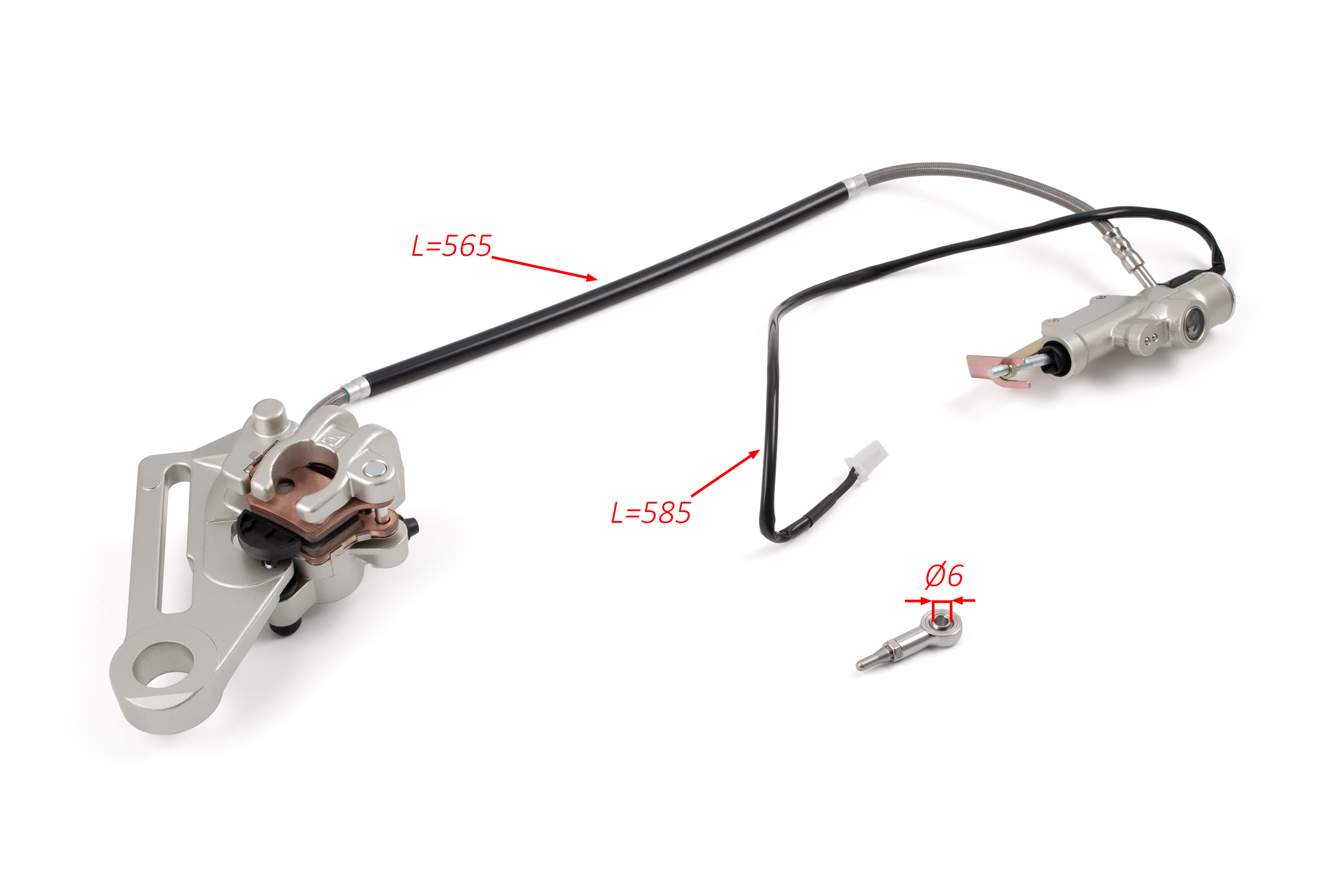 - • В комплекте: главный тормозной цилиндр, суппорт, тормозные колодки, армированная гидролиния, крепёж, концевик под стоп-сигнал
