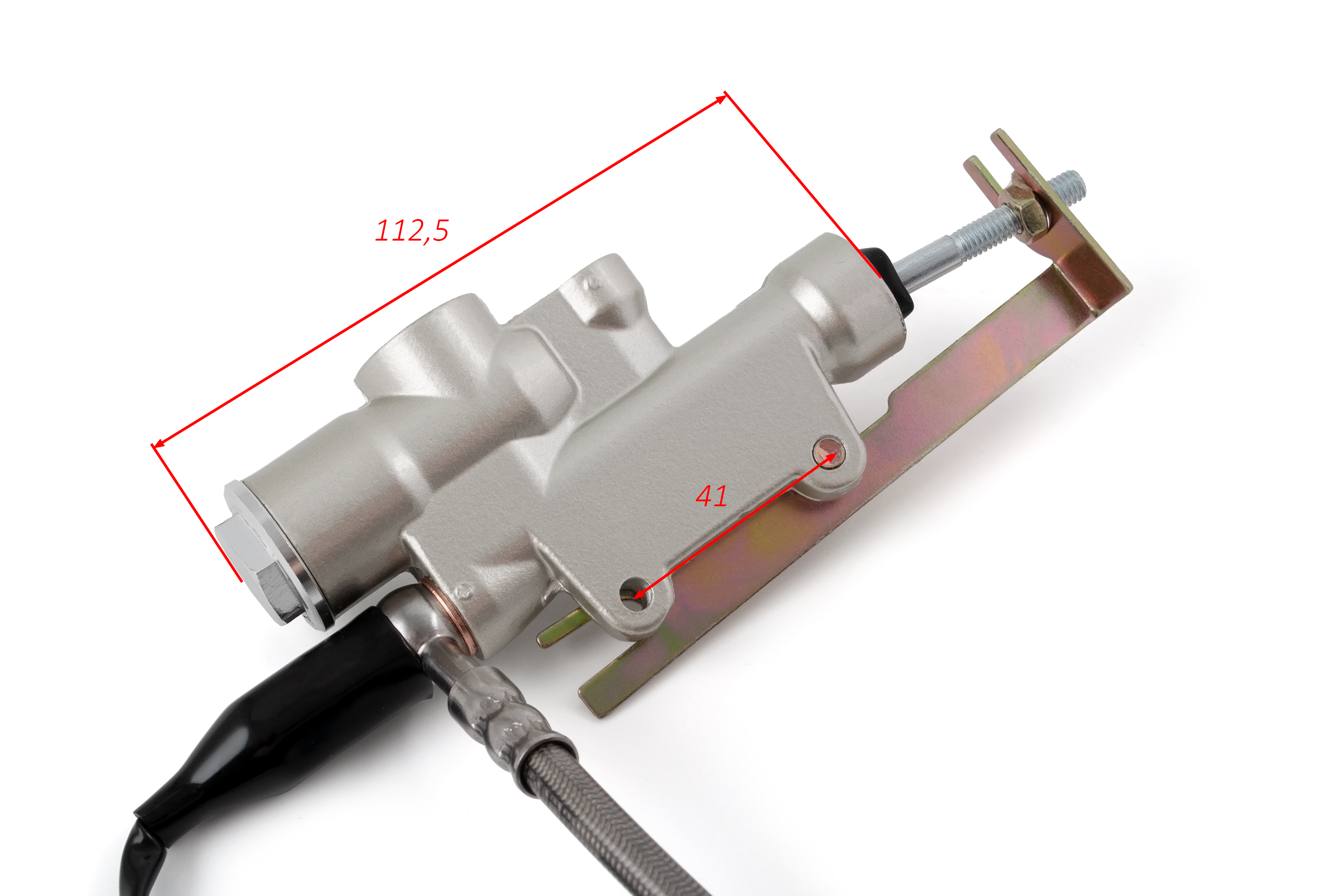 - • Главный цилиндр: длина 112,5 мм, между отверстиями крепления 41 мм