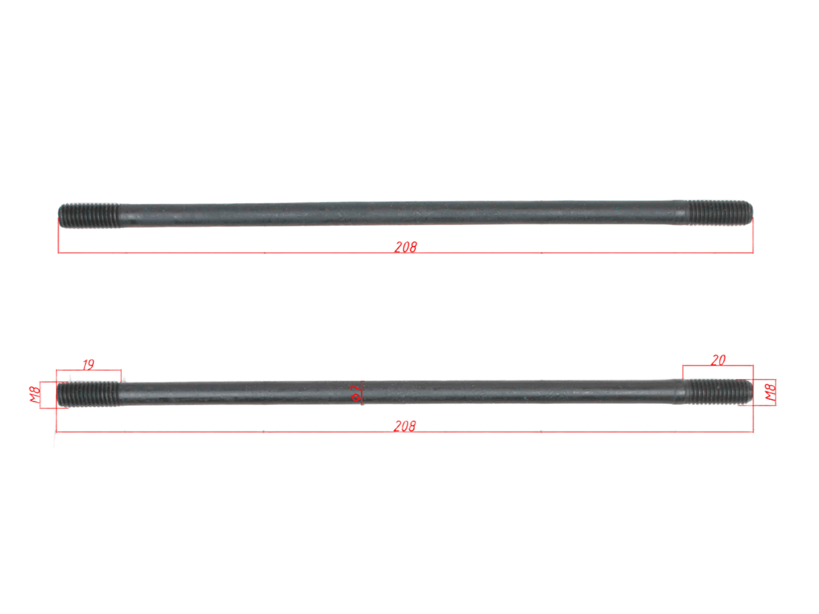 - • Тип и шаг резьбы: М8 х 1.25 мм (с обеих сторон)