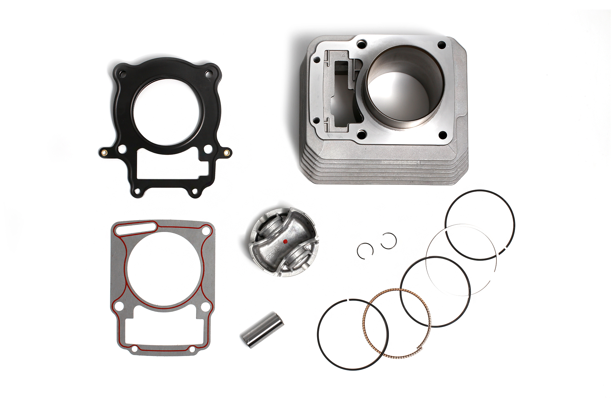 Полная комплектация — всё для замены или тюнинга в одной коробке: поршень, кольца, цилиндр, прокладки, стопорные кольца, прокладки.