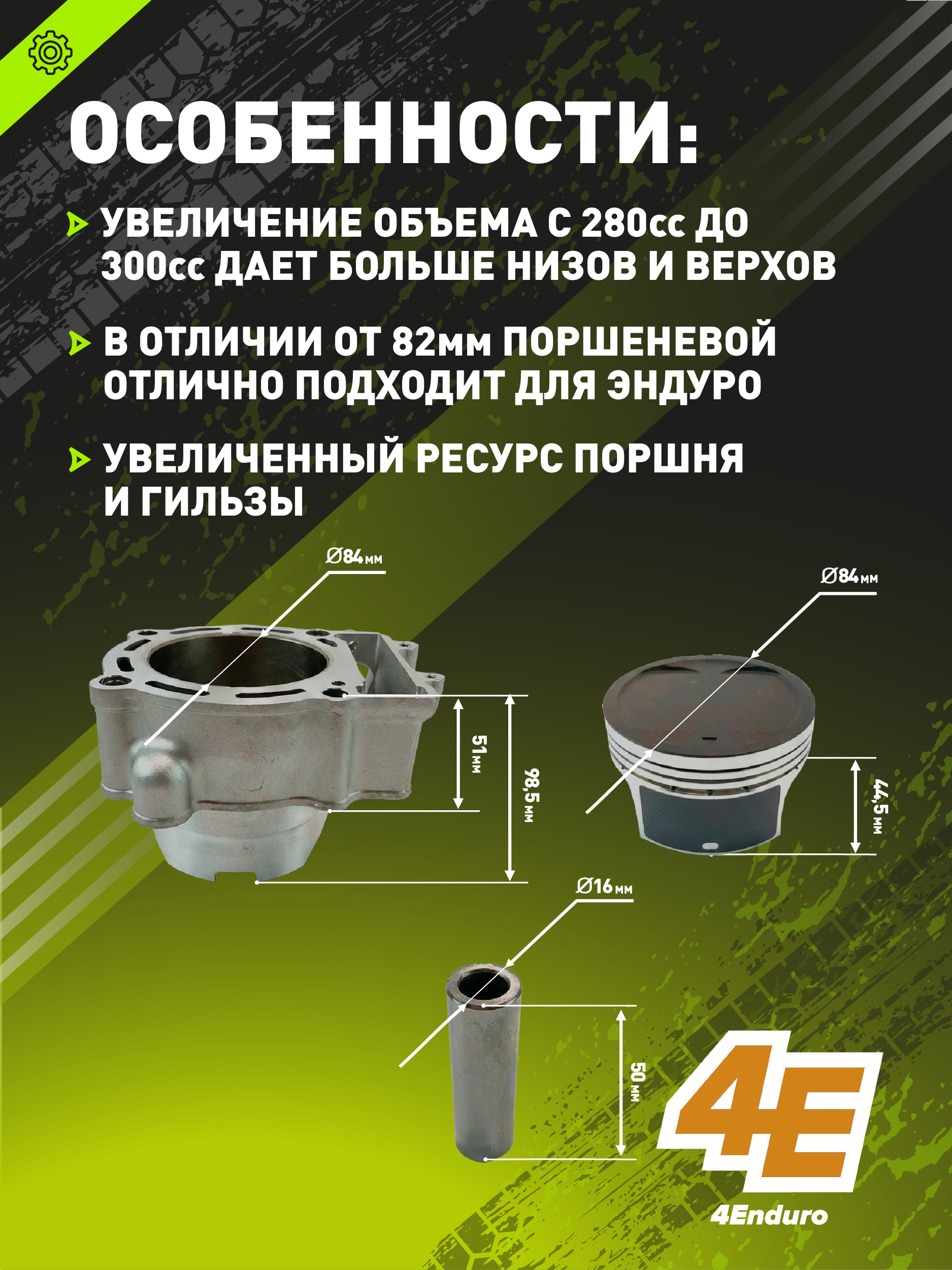 - • Поршень диаметром 84 мм