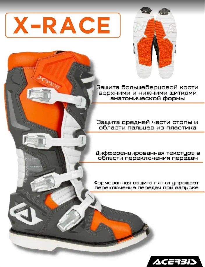 Мотоботы кроссовые Acerbis X-RACE Orange/Grey, (р.44)