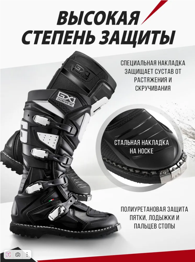 Характерной чертой Gaerne GX-1 Enduro является подошва с развитыми грунтозацепами и основное назначение этих бот - эндуро. Модель GX-1 будет прекрасным выбором для всех начинающих райдеров и энтузиастов внедорожного катания. Ботинок выполнен из высококачественной кожи, пластиковые защитные элементы обеспечивают долгий срок службы, металлические застежки надежно работают из раза в раз. Мотоботы GX-1 прекрасно справляются с задачей по обеспечению комфорта даже в длительных поездках.
