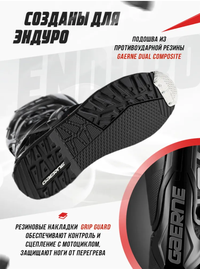 Обновление дизайна SG-12 можно заметить с первого взгляда благодаря ярким и узнаваемым логотипам «G», символизирующим качество лучшего мотоботинка для мотокросса. Сохранив удачную конструкцию, инженеры Gaerne не остановились на достигнутом, продолжая делать ботинок еще лучше.