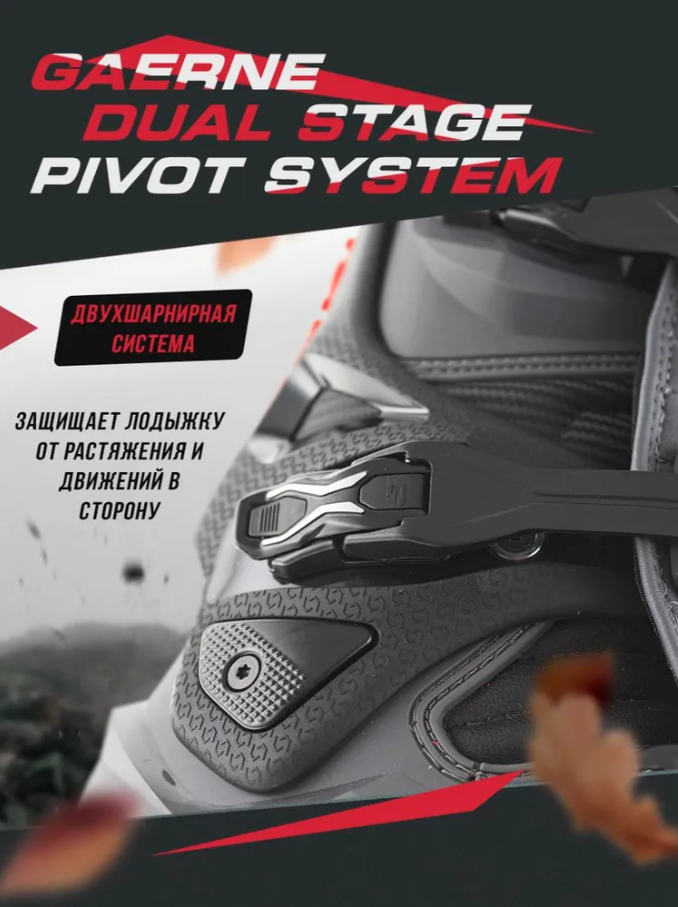 Мотоботы Gaerne SG22 — профессиональная экипировка для победителей, созданная с применением инновационных технологий итальянского бренда. Эти ботинки разработаны для гонщиков, стремящихся к максимальным результатам. Технологичные особенности: • Алюминиевые застёжки Aluminium Superlight Buckles — облегчённая конструкция с новой окраской, верхняя застёжка регулируется в 3 положениях • Система вентиляции Air Vents — эффективный отвод тепла и влаги в сочетании с усовершенствованной подкладкой • 3D накладка на носке Main Body Toe Box — снижает высоту на 9 мм для более быстрого переключения передач • Регулируемый щиток голени Frontal Shin Guard — 2 положения регулировки, совместимость с наколенниками • Облегчённый стальной бампер Steel Bumper 1 — матовая поверхность, уменьшенная толщина без потери защиты Защитные системы: • Покрытие Grip Guard 1 — разработано совместно с гонщиками для оптимального контроля мотоцикла • Подошва Dual Density Sole — двойная плотность для сцепления и амортизации • Технология Razorback — улучшенная подвижность голеностопа • Двухшарнирная система Dual Stage Pivot System — защита от травм лодыжки • Амортизирующая пятка G-Microshock Heel Pad — поглощение микроударов Рекомендации по подбору размера: • Используйте официальную размерную сетку Gaerne • Для широкой стопы может потребоваться размер больше • В описании указаны ориентировочные соответствия российским размерам • Рекомендуем примерку при возможности Производство: Сделано в Италии с соблюдением традиционных стандартов качества Gaerne. Эти мотоботы сочетают последние технологические разработки с проверенным итальянским качеством изготовления. Мотоботы Gaerne SG22 — это выбор профессионалов, созданный для тех, кто не ищет компромиссов между защитой, комфортом и спортивными результатами.