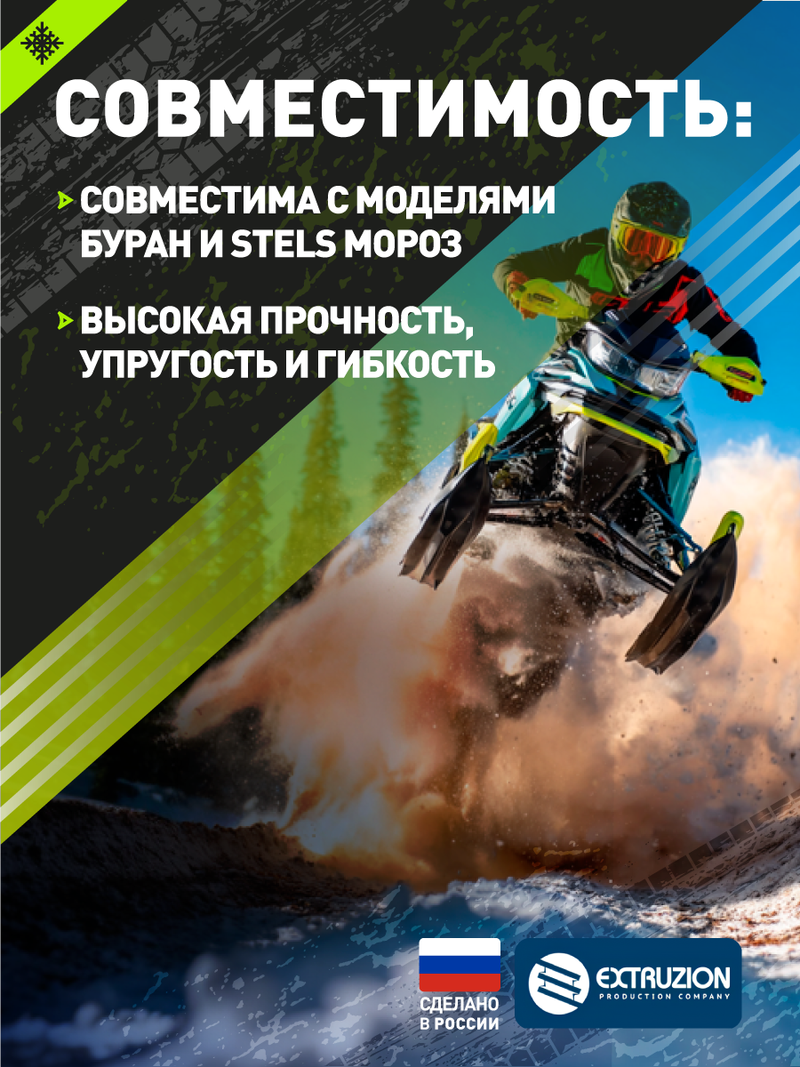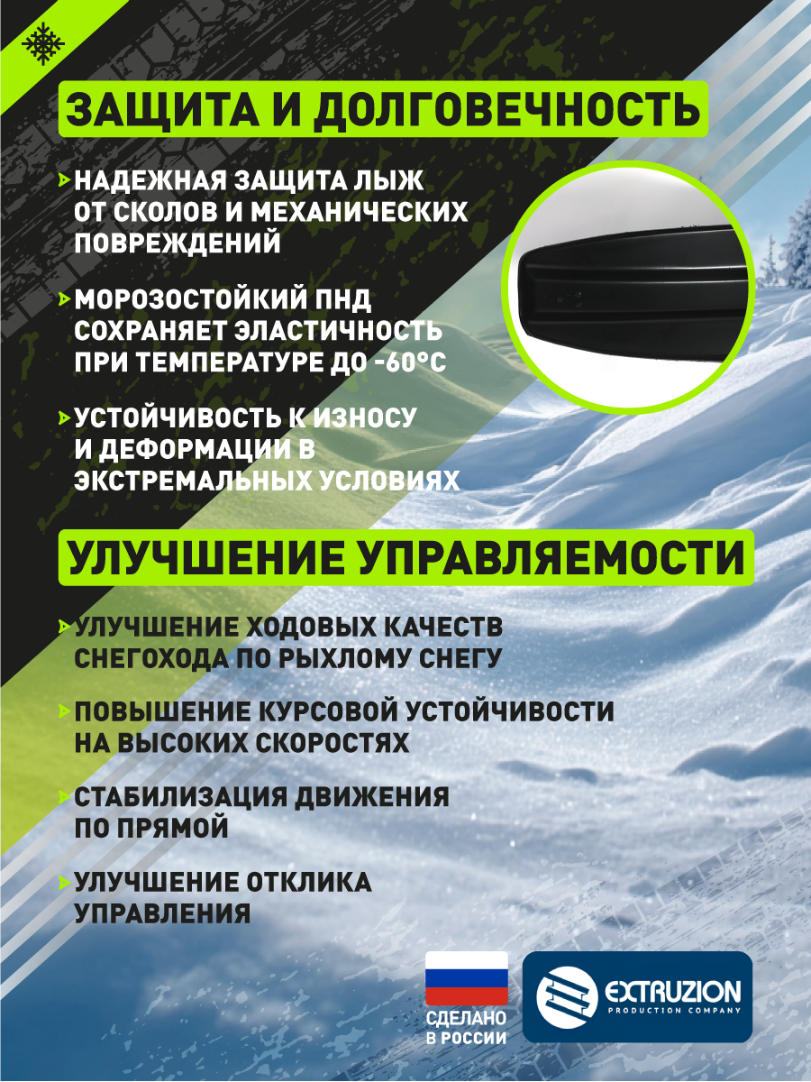 - Специализированная накладка на лыжи для снегохода «Буран». Обеспечивает улучшение ходовых качеств и повышение проходимости. Защищает стандартные снегоходные лыжи от износа и повреждений при эксплуатации в сложных зимних условиях.