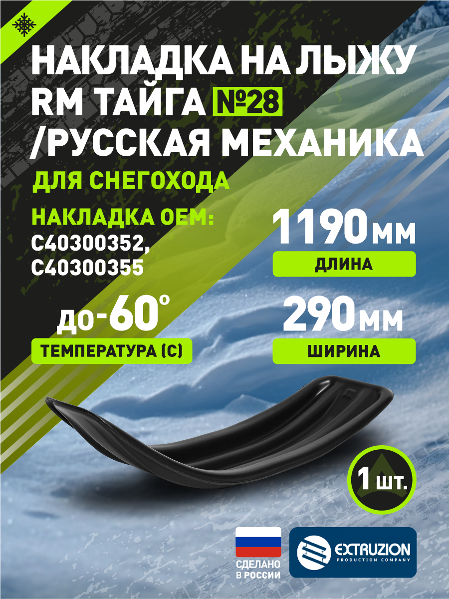 - Специализированная накладка на лыжи для снегоходов «Тайга» и «Русская механика». Разработана для повышения проходимости и защиты стандартных лыж от износа и повреждений. Обеспечивает улучшение ходовых качеств и повышенную плавучесть в глубоком снегу.