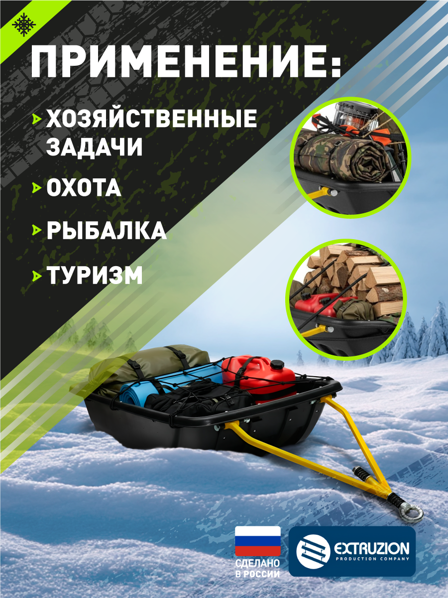- Мощные сани-прицеп для перевозки крупных грузов по снежной целине. Полностью укомплектованы для немедленного использования с любой буксировочной техникой.