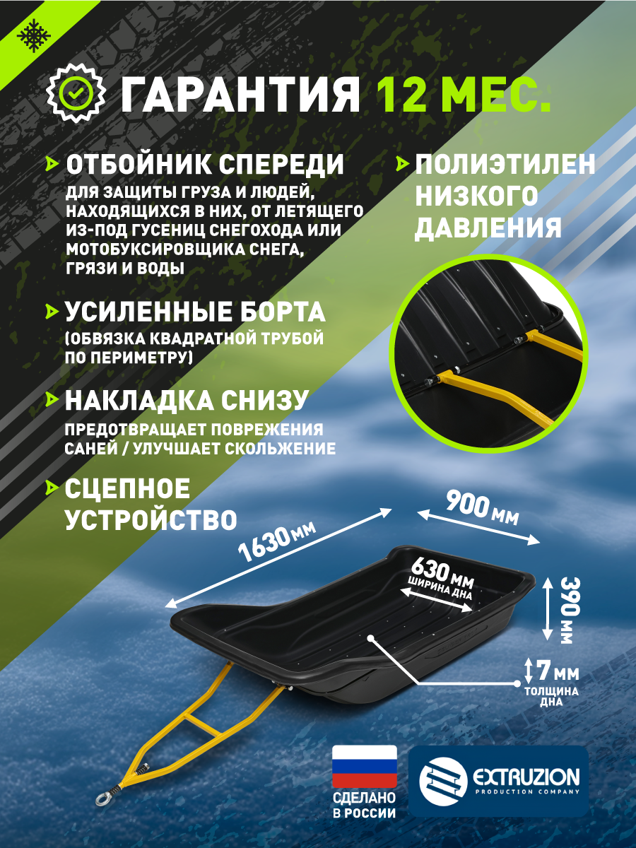 Сани волокуши с обвязкой, отбойником и полозьями Seliger-1600 (1630x900x390) для снегохода, мотобуксировщика, рыбалки, охоты. Ширина дна 630.