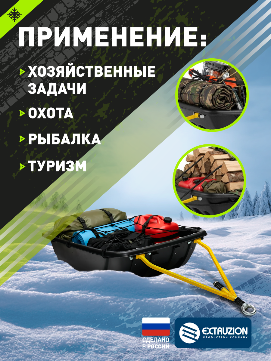 Сани волокуши с обвязкой и полозьями С-7 (1200x700x270) для снегохода, мотобуксировщика, рыбалки, охоты.
