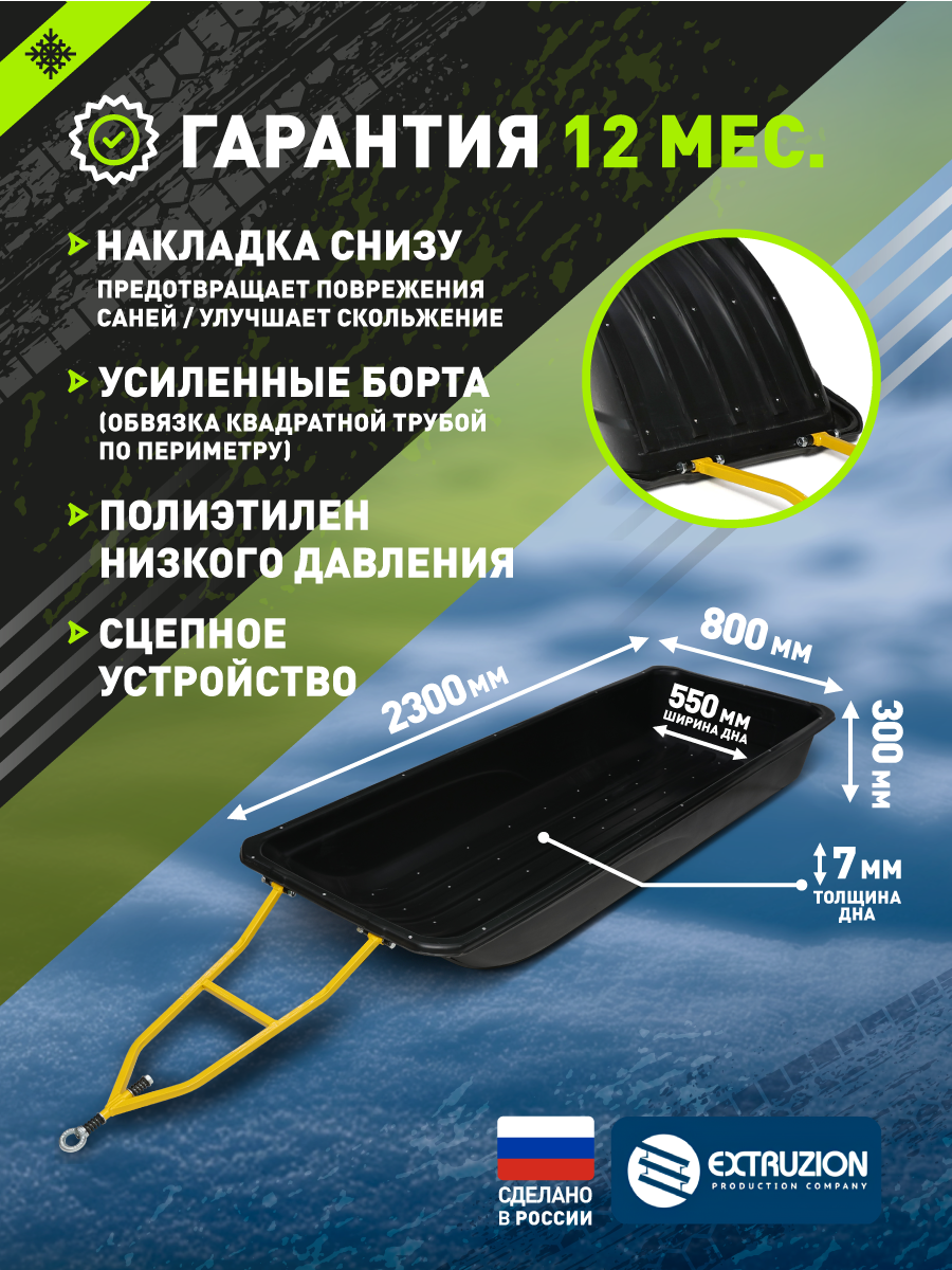 Сани волокуши с обвязкой и полозьями Тайга-2300 (2300x800x300) для снегохода, мотобуксировщика, рыбалки, охоты. Ширина дна 550.