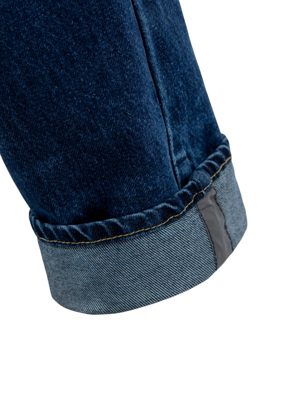 Верх мотоджинсов выполнен из 100% хлопкового денима.