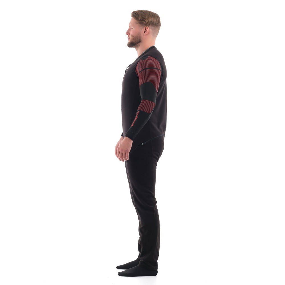 Черный полукомбинезон из флиса и виндстоппера – разновидность термобелья, обеспечивает повышенную теплоизоляцию в области груди, спины, коленей и паха. Используется как "второй слой": надевается на тонкое термо под штаны или комбинезон. Эта простая вещь сделает спорт и активный отдых зимой значительно более комфортным: легкий и теплый полукомбинезон по достоинству оценят те, кто передвигается на технике (снегоход, сноубайк, квадроцикл), катается на сноуборде, занимается зимней охотой или рыбалкой. В качестве утепляющего слоя пригодится в любой холодный период года: весной и осенью можно носить полукомбинезон под вейдерсами и непромокаемым мембранным костюмом.