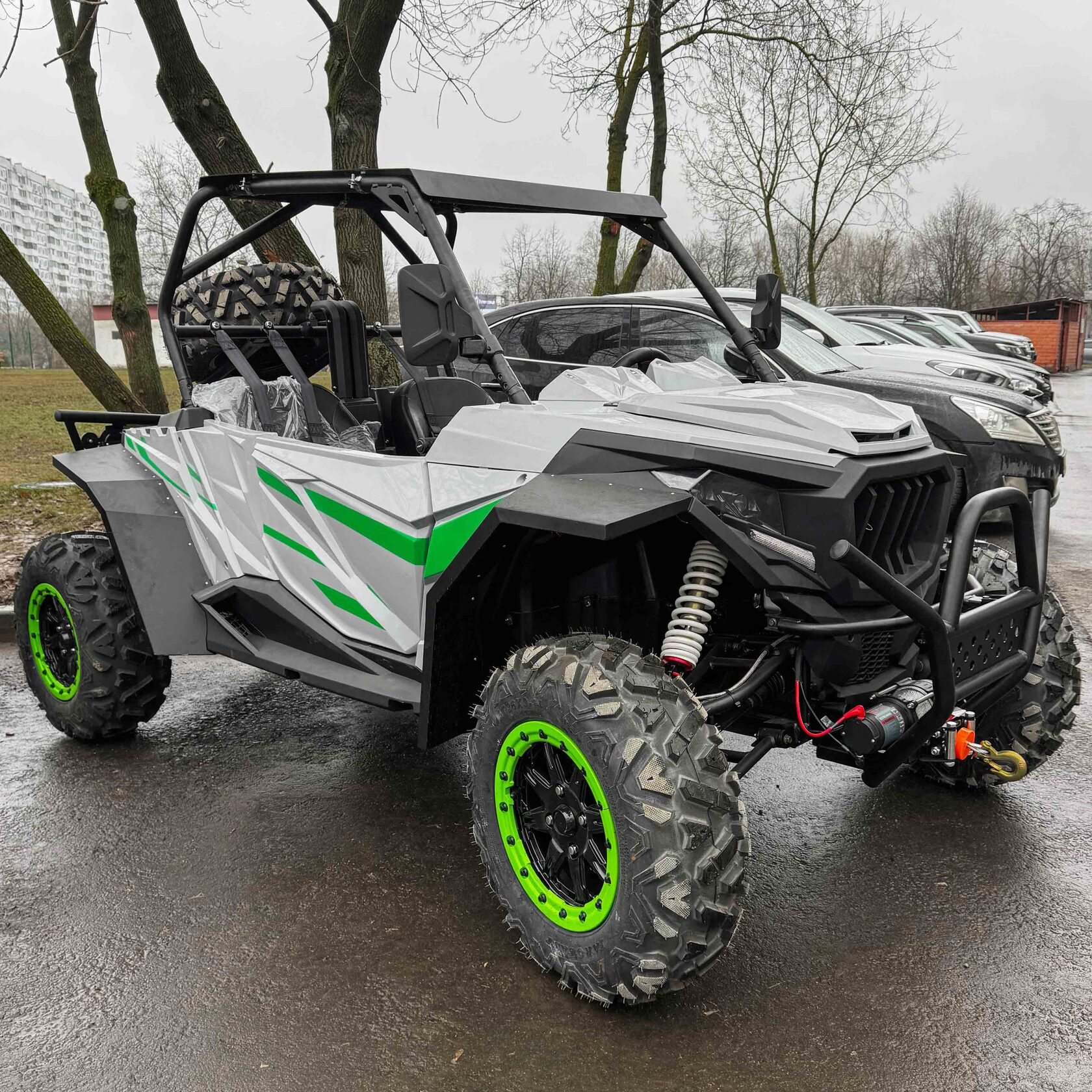 Наш двухместный багги — идеальный выбор для охоты, рыбалки, экспедиций и экстремальных поездок. Оснащенный мощным одноцилиндровым двигателем (500 см³, 37.5 л.с.) с жидкостным охлаждением, он уверенно преодолевает грязь, песок и снег, работая на доступном бензине АИ-92.
