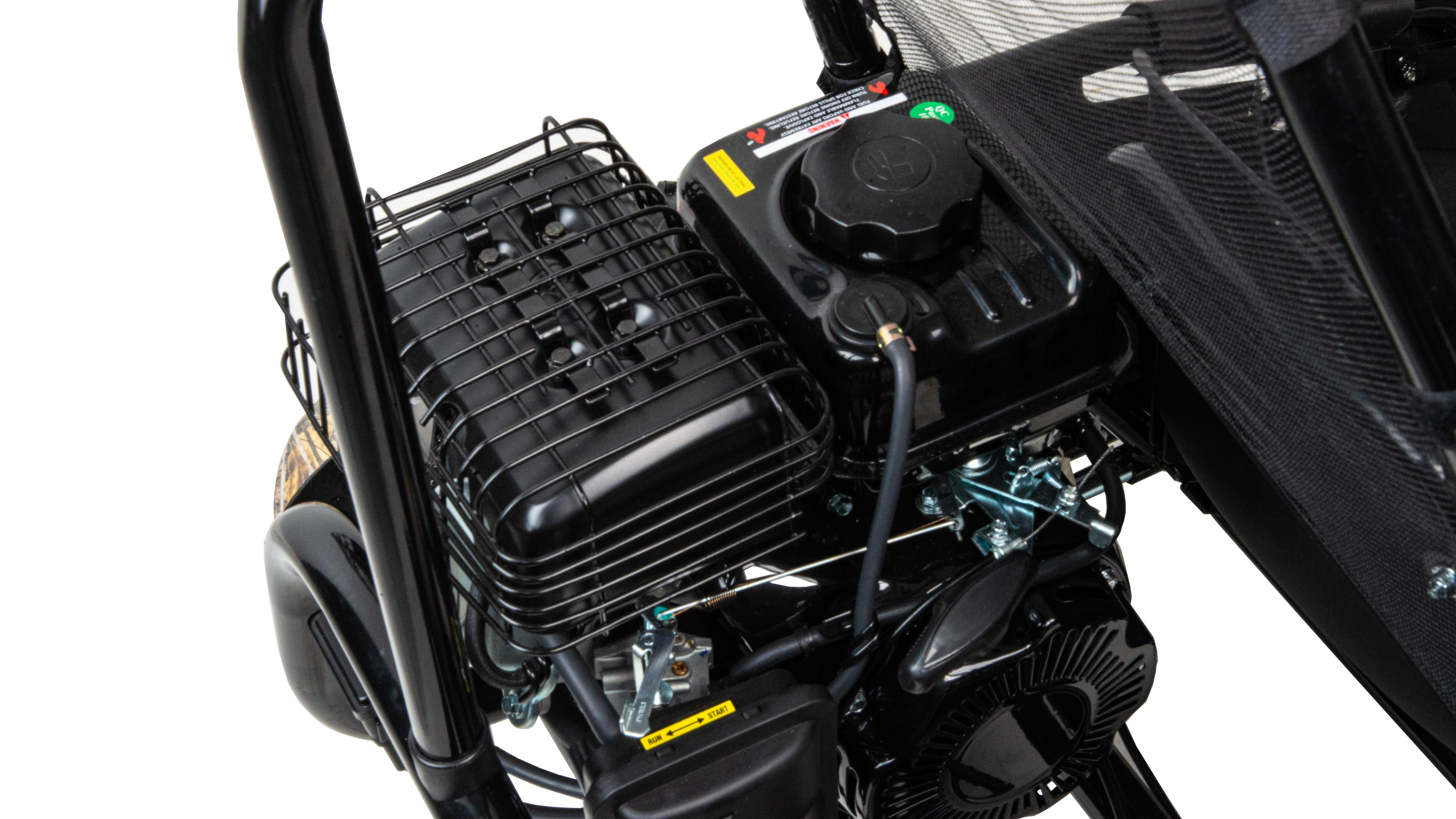 Двигатель - 100 см3 с воздушным охлаждением. Тип двигателя - Бензиновый 4-х тактный, 1-цилиндровый. Система запуска - Ручной стартер. Трансмиссия - Вариатор. Привод - Задний цепной. Тормозная система - Дисковая гидравлическая. Мощность -7 лс. Максимальная скорость - 40 км/ч