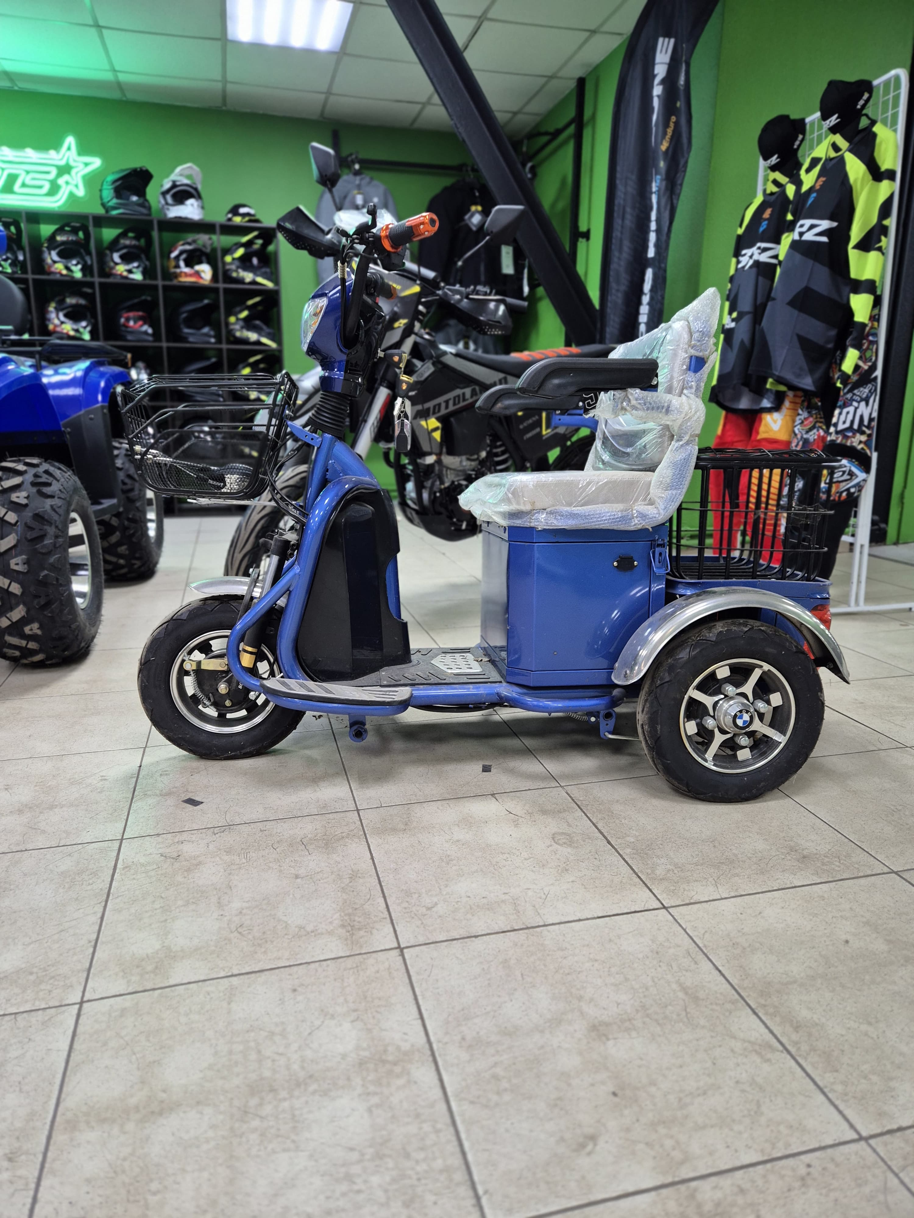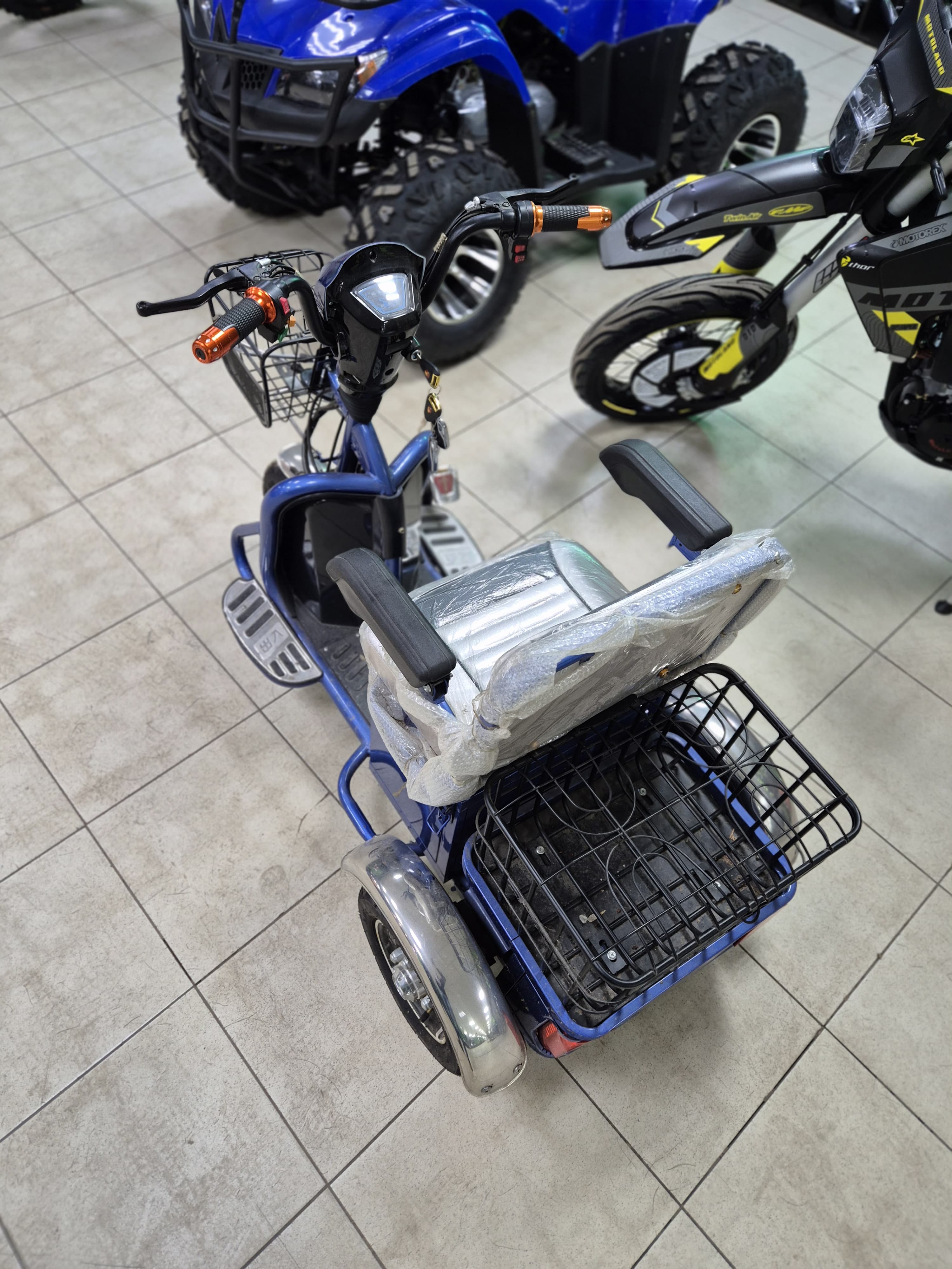 Элегантный трехколесный скутер с электромотором с удобным и эргономичным сиденьем, способствует приятному и комфортному передвижению в пути. Идеально подходит для поездок в магазин за продуктами благодаря встроенной вещевой корзине, для перевозки пакетов с продуктами или личных вещей. Благодаря трициклу теперь ваши прогулки в парке могут увеличиться в разы! Теперь вам доступны большие расстояния без потери сил и переутомления.