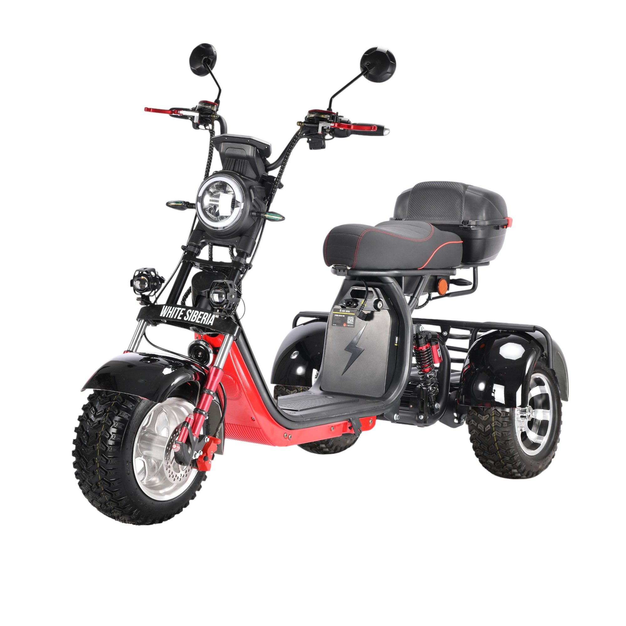 Электроскутер WHITE SIBERIA PRO TRIKE 3000W. Самый мощный и комфортный трицикл на российском рынке. Безопасный и надежный, он станет незаменимым помощником для людей, постоянно или сезонно проживающих за городом. Благодаря большой грузоподъемности (260 кг) и емкой АКБ, трицикл идеально подойдет для длительных поездок в магазин, в лес за грибами или ягодами, на рыбалку или для любых приятных прогулок.