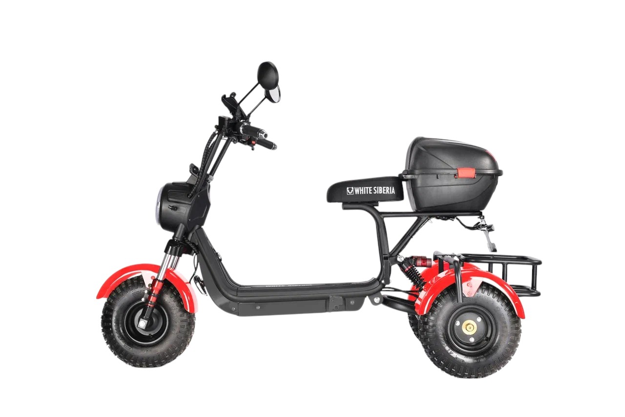Электротрицикл WHITE SIBERIA TRIKE MINI RED 1500W - "мини" трицикл. Безопасный и надежный, он станет незаменимым помощником для людей, постоянно или сезонно проживающих за городом, а за счёт своей компактности и в городской среде.