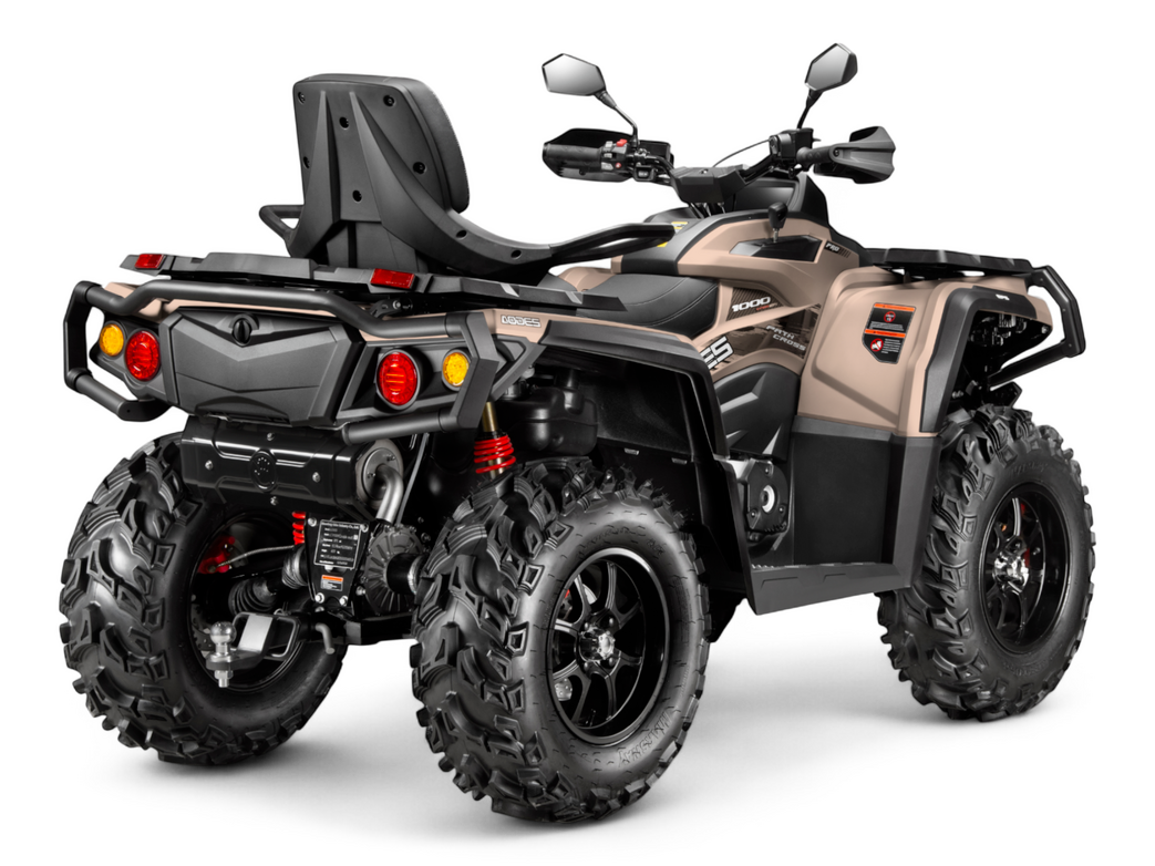 Электроусилитель руля (EPS), зеркала заднего вида, лебедка с тяговым усилием 1500 кг, усиленный передний и задний бампер, расширители колесных арок и двухместное сиденье. Кроме того, вас порадует современная светодиодная оптика и максимально удобные органы управления от стояночного тормоза до розетки в 12В и USB разъема.