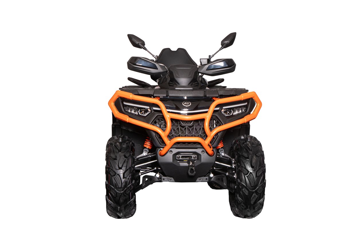 Лимитированная версия CFORCE 1000 EPS LTD — эксклюзивное предложение для тех, кто ценит адреналин и яркие эмоции на сложном бездорожье! Это версия флагмана от CFMOTO, но в уникальных цветах: благородный серый цвет с элегантными красными элементами и бамперами и стильный черный с оранжевыми элементами и бамперами. Укомплектованный 28-дюймовыми грязевыми шинами, установленными на 14” диски с бедлоками, CFORCE 1000 EPS LTD обеспечивает вам непревзойденное управление, проходимость и уверенность на самых сложных маршрутах. Но настоящим прорывом является внедрение 8” MMI-дисплея с тачскрином и оффлайн-картами России – функциональность, которую так долго ждали фанаты квадроциклов. К базовым функциям, которые были на 7” экране, таким как выбор языка, быстрая смена режимов эксплуатации добавились: оффлайн-карта местности, голосовое управление, обновление через Wi-Fi и многое другое. Таким образом, благодаря новому 8” MMI-экрану райдер cможет записывать свои маршруты и треки онлайн*. А Apple CarPlay позволит транслировать любые установленные на телефоне навигационные программы: Яндекс Навигатор, Maps.Me, Guru Maps и другие, а также самые распространённые приложения, которые поддерживаются в Apple CarPlay, например, Яндекс Музыка и т.п. Кроме того, через Bluetooth можно подключить телефон или планшет, а также 2 гарнитуры (водителя и пассажира). Но даже при отсутствии интернет-соединения с помощью оффлайн-карт квадроциклист может смотреть местность, по которой он передвигается и видеть свое местоположение. *Бесплатный пробный период для карт: 1 год для онлайн и 3 года для оффлайн-карт. Продлить этот период можно, оплатив 19 долларов за оффлайн и 39 долларов за онлайн+оффлайн карты на 1 год через PayPal. В случае неоплаты в указанные сроки все карты, ранее закачанные на устройство, остаются доступными, но не обновляются. Основные характеристики остаются теми же, что и у CFORCE 1000 EPS NEW. Воплотите свои мечты в реальность и отправляйтесь в новые приключения на эксклюзивном CFORCE 1000 EPS LTD! На квадроцикле допускается выезд на дороги общего пользования. Дополнительные преимущества: – Абсолютно новая платформа третьего поколения G3