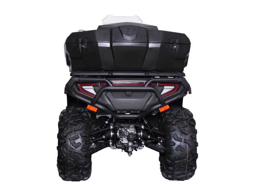 Модель имеет большой стильный кофр для хранения вещей вместимостью 90 литров, в него помещается два шлема открытого типа и один полноразмерный шлем. Кофр закрывается на ключ и защищен от попадания брызг и капель воды, просто устанавливается, позволяя легко и удобно упаковывать все необходимые вещи для путешествий, охоты или рыбалки.