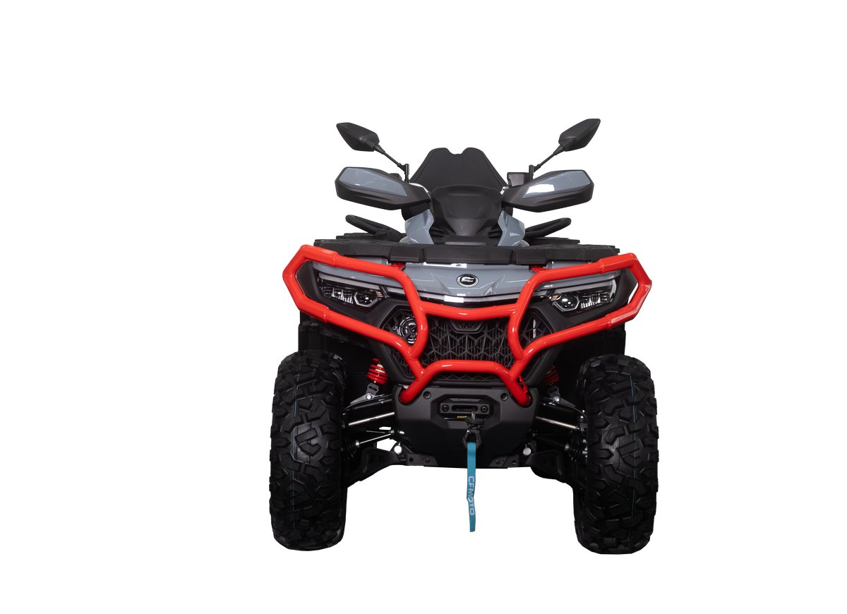 Лимитированная версия CFORCE 800 HO EPS LTD! Представляем вам эту новинку в уникальной расцветке: благородный серый с яркими красными элементами и силовыми бамперами, созданную для тех, кто ценит стиль и производительность.