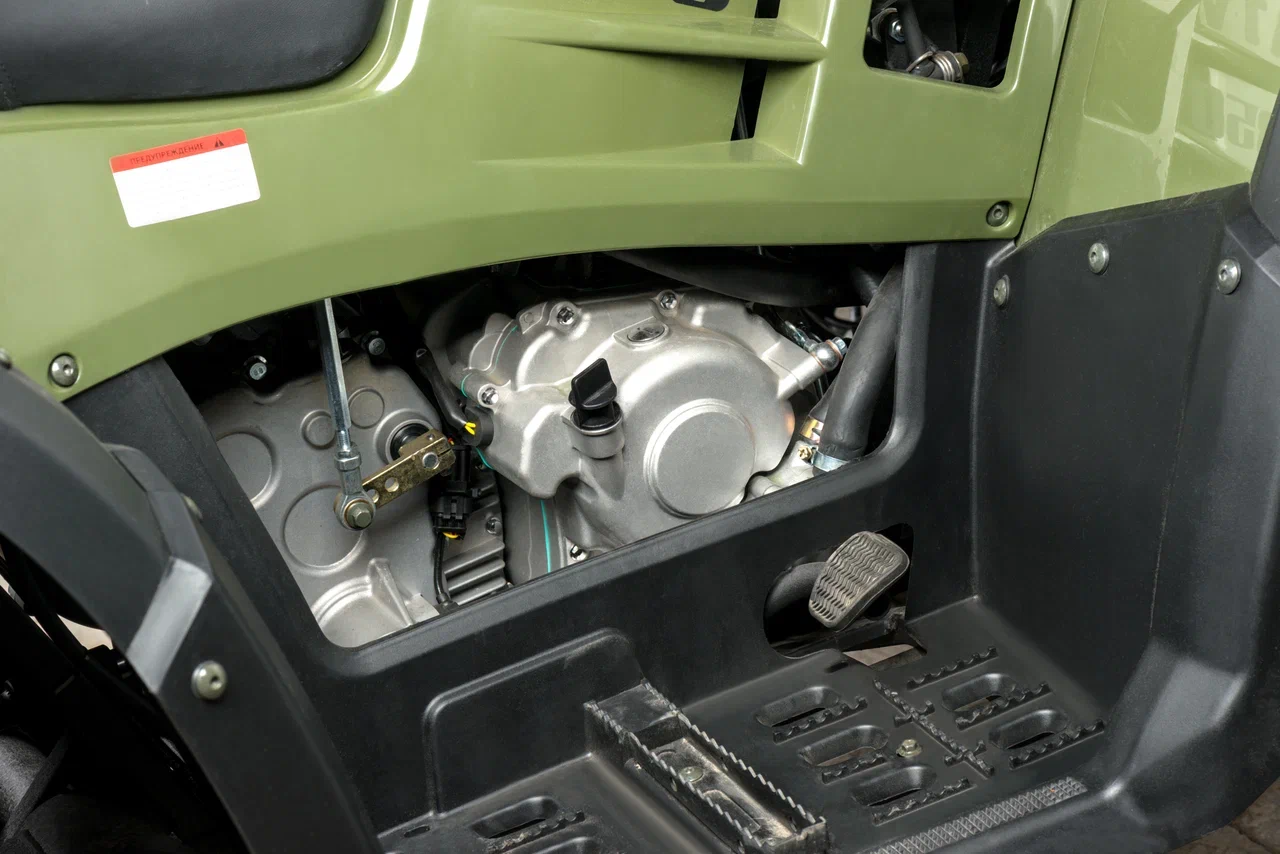 Подключаемый полный привод с блокировкой дифференциала значительно улучшает проходимость квадроцикла и его управляемость на сложных участках дороги, позволяя эффективно распределять крутящий момент между осями и предотвращать занос.