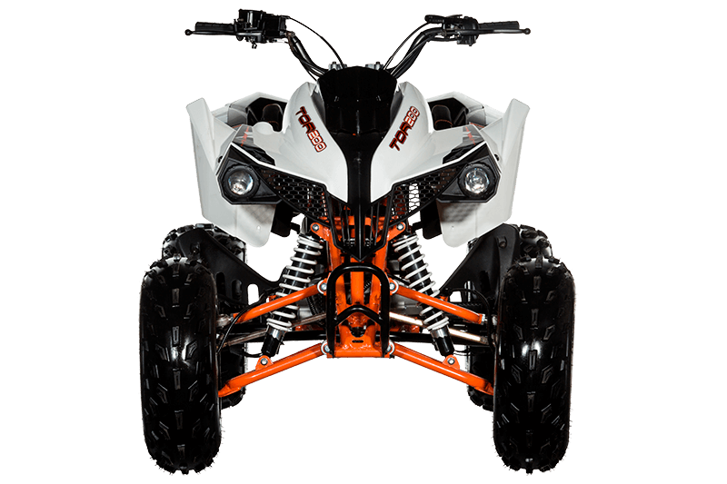 Подвеска квадроцикла KAYO A200 собрана с учетом особенностей использования модели: передние гидравлические амортизаторы с увеличенным ходом задействованы в независимой рычажной подвеске; задняя подвеска маятникового типа оснащена мощным моноамортизатором со ступенчатой регулировкой преднатяга пружины и параметров сжатия/отбоя.