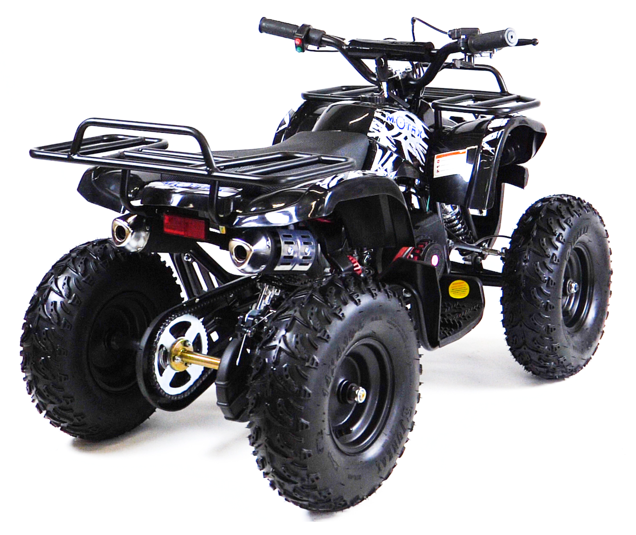 квадроцикл MOTAX GRIZLIK Х16 ES BW(с электростартером и родительским контролем). Отличие от остальных моделей кроется в названии. Этот квадроцикл оборудован 6-дюймовыми колёсами с шинами низкого давления и увеличенного размера, что позволяет получить больший ездовой комфорт и проходимость за счёт увеличенного клиренса.