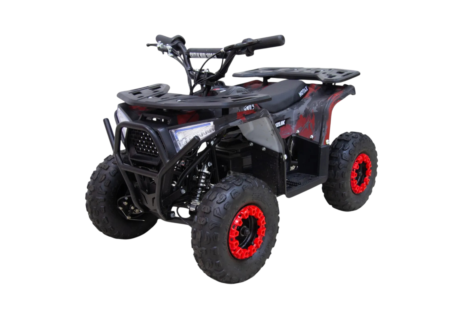 - Простота управления: MOTAX GRIZLIK MIDI E1000 BW имеет эргономичное рулевое управление, что позволяет вашему ребенку на нём легко освоить азы управления мототехникой. Также благодаря мягкой подвеске рассчитанной на легких райдеров, ребенок будет лучше контролировать квадроцикл и получать меньше дискомфорта на неровностях. Перек