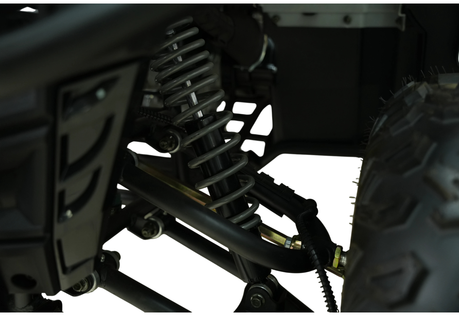 У квадроцикла MOTAX уверенный разгон и легкое управление, даже неопытный райдер с комфортом преодолеет неровные участки пути – всё благодаря независимому двойному амортизатору спереди и одиночному амортизатору удара сзади. Для удобного запуска в любых условиях в сборке у MOTAX GRIZLIK W200 электрический и ручной стартеры.