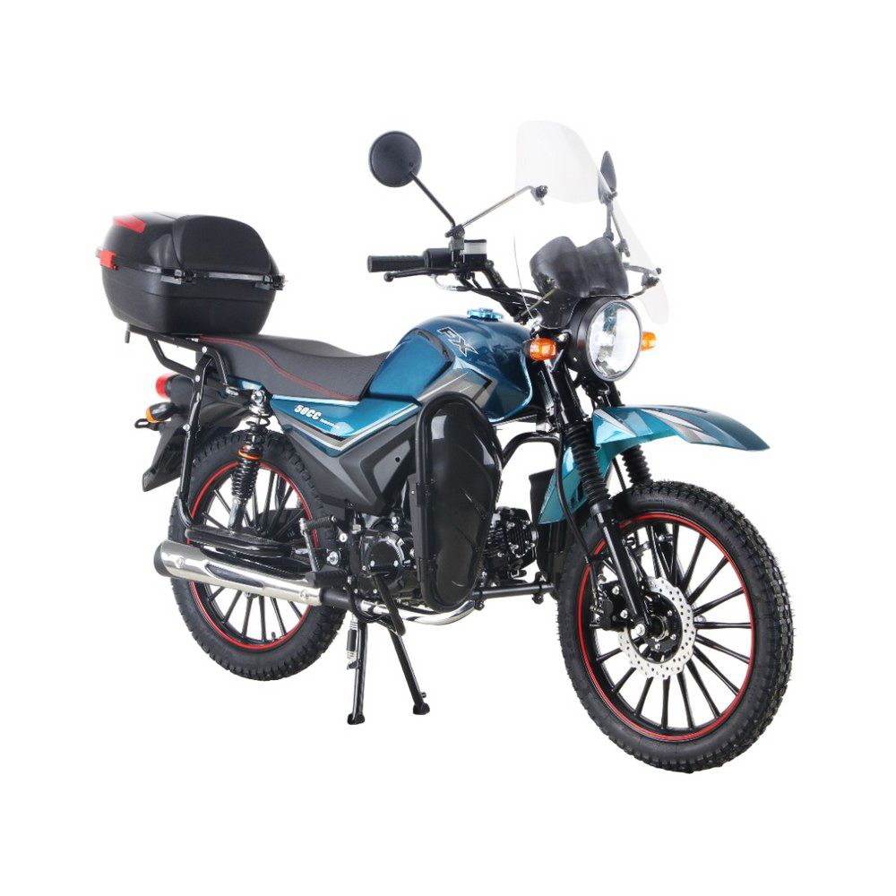 Мопед FXMOTO FX-50 — это идеальное сочетание современного дизайна, надежности и комфорта. Этот компактный транспорт создан для тех, кто ценит удобство в повседневной жизни и любит выезжать за город на природу. С его мощным двигателем объемом 125 куб. см (на базе ДВС 50 куб. см) и воздушным охлаждением, он легко справляется как с городскими улицами, так и с легким бездорожьем. Одним из главных преимуществ FXMOTO FX-50 является его современная оптика. Полностью диодная фара головного света, светодиодные задние фонари и поворотники обеспечивают отличную видимость в любое время суток, а также делают мопед заметным на дороге. Ветровое стекло защищает от ветра и грязи, делая каждую поездку более комфортной. Модель оснащена увеличенным топливным баком, что позволяет реже останавливаться для заправки и наслаждаться длительными поездками. Для дополнительного удобства предусмотрен USB-разъем, который позволит заряжать ваши гаджеты прямо в пути. Кофр и дополнительные карманы на передней дуге помогут организовать пространство для хранения вещей, будь то покупки, инструменты или личные принадлежности. Дизайн FXMOTO FX-50 поражает своей современностью и функциональностью. Новые диски и обновленное переднее крыло не только улучшают внешний вид, но и обеспечивают лучшую защиту от грязи. Цветовая гамма включает пять вариантов: классический черный, яркий красный, глубокий синий, спокойный белый и уникальный оттенок морской волны. Каждый найдет цвет, который подчеркнет его индивидуальность. Безопасность всегда на первом месте. Мопед оснащен дисковым передним тормозом и барабанным задним, что гарантирует надежное торможение даже в сложных условиях. Современный электромеханический щиток приборов предоставляет всю необходимую информацию о состоянии мопеда, а шины размером 2,50/17 (передняя) и 2,75/17 (задняя) обеспечивают отличное сцепление с дорогой. FXMOTO FX-50 — это не просто мопед, это ваш надежный спутник в любой ситуации. Будь то ежедневные поездки на работу, учебу или отдых за городом, этот мопед справится с любой задачей. Его компактность, маневренность и экономичность делают его идеальным выбором для современного человека.