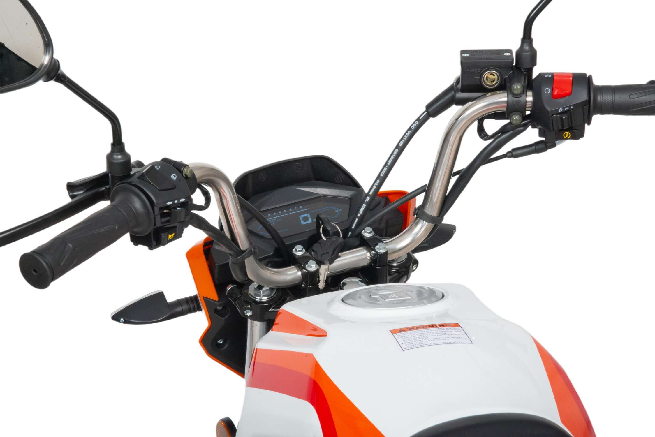 Двигатель имеет возможность легкого запуска с кнопки на руле, так как имеет электростартер, а при необходимости можно воспользоваться кикстартером.