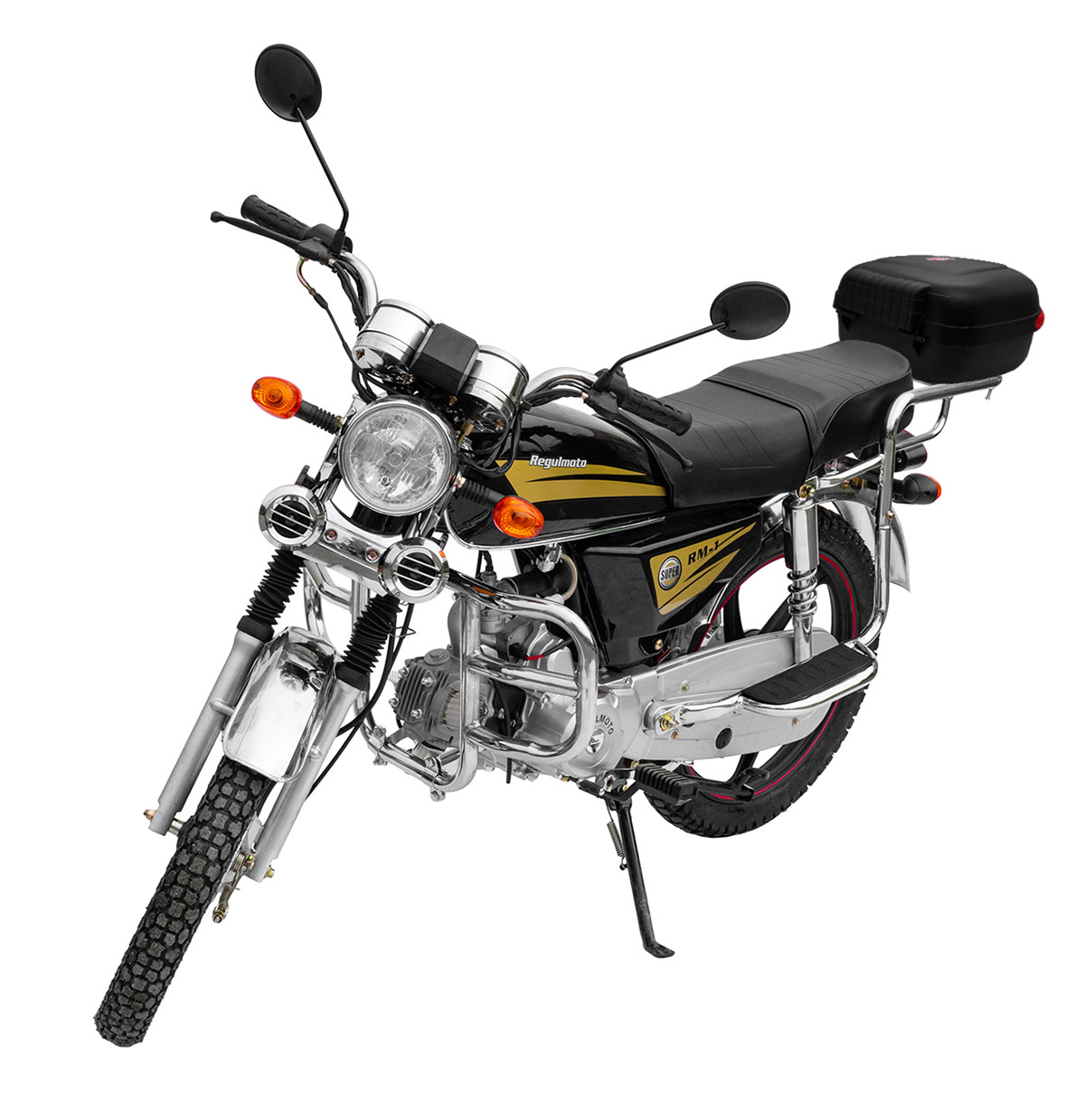 Владелец новенького Regulmoto Alpha (RM-1) по достоинству оценит экономичный двигатель, высокую надежность конструктивных решений и доступную стоимость сервисного обслуживания техники. Мопед полностью готов к комфортному использованию на дорогах города и проселках пригорода и способен успешно справляться с широким кругом эксплуатационных задач.