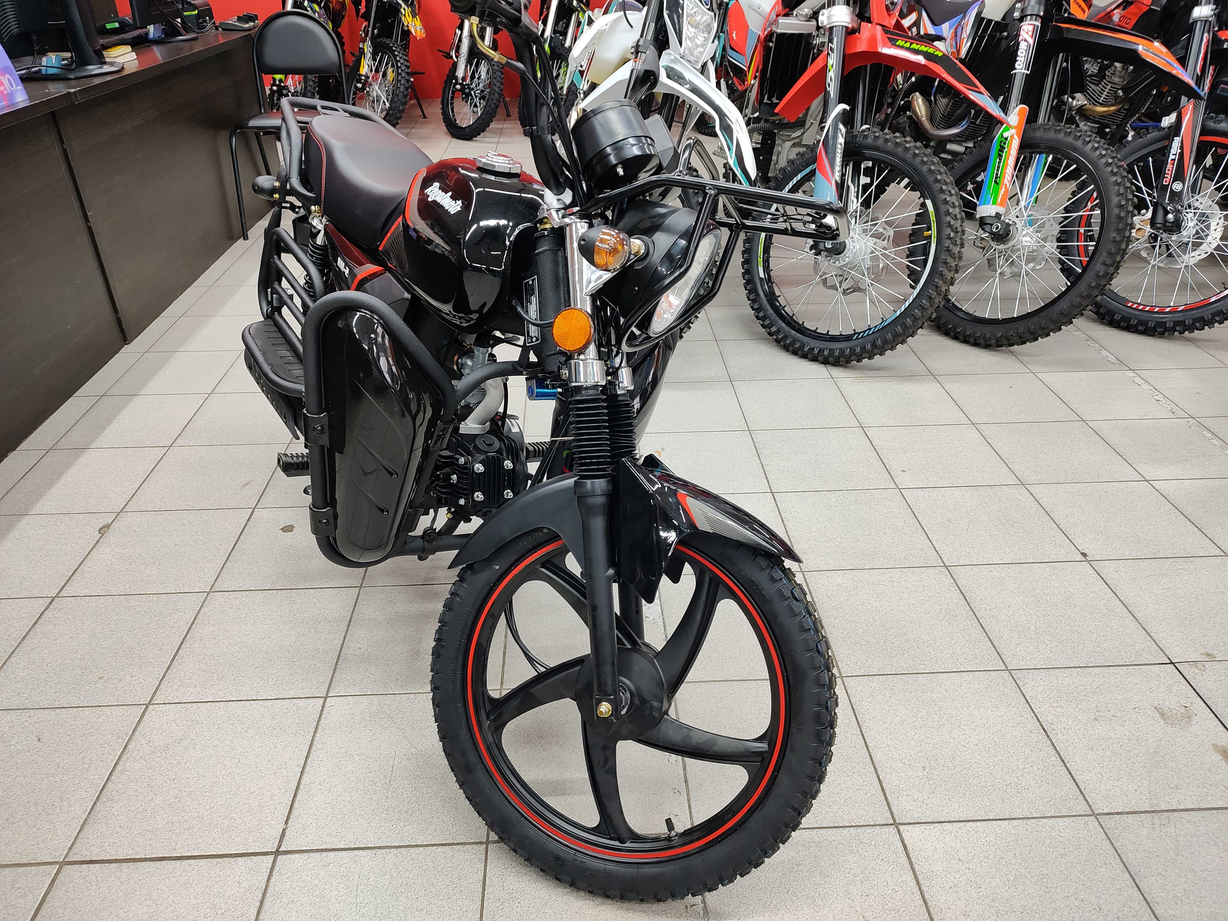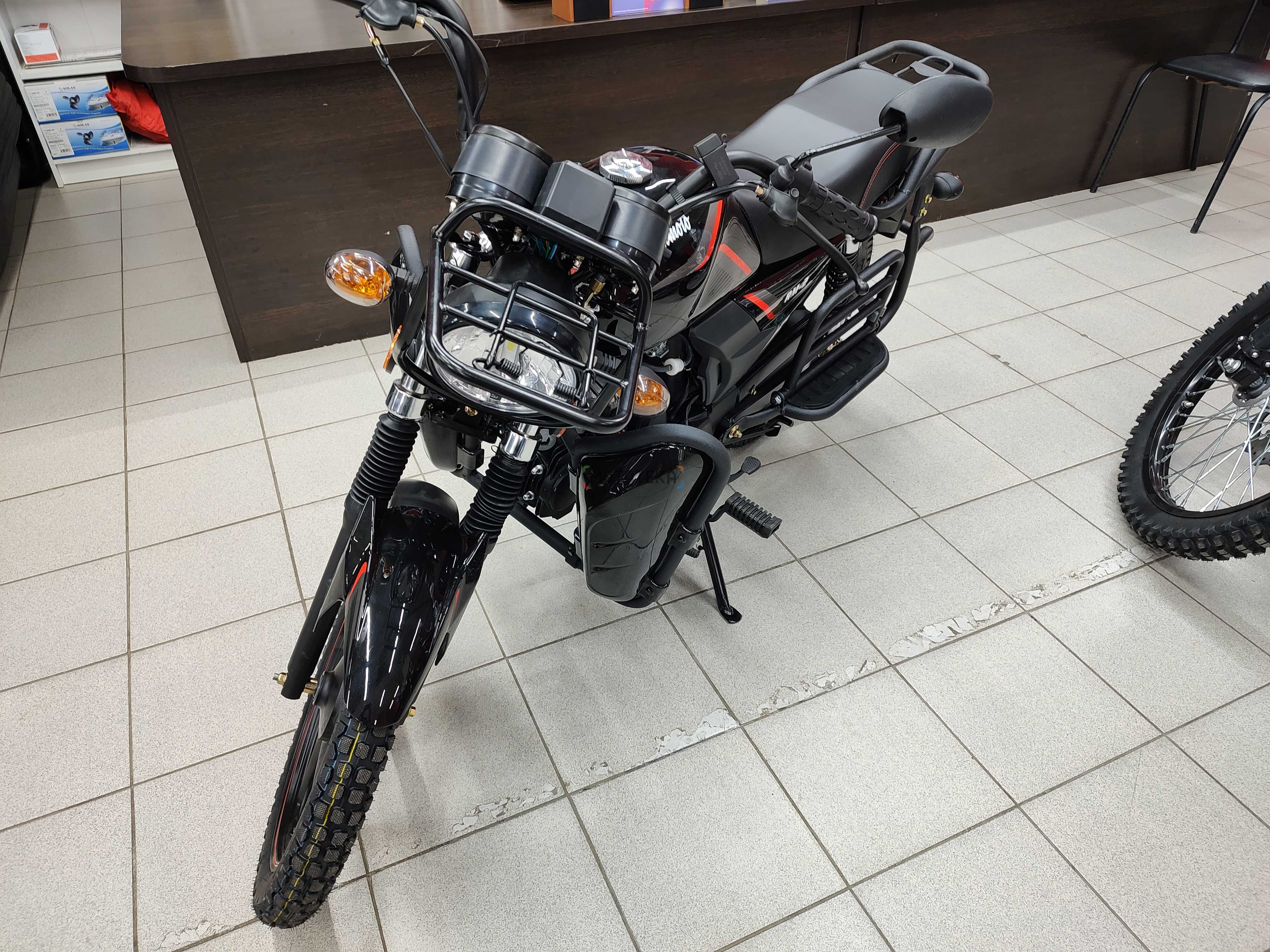 Данная модель отличается продуманной комплектацией, призванной повысить комфорт владельца мопеда и расширить эксплуатационный потенциал техники. Силовой агрегат – одноцилиндровый 4-тактник «кабовского» типа с увеличенным рабочим объемом. Новая ЦПГ устанавливается на производстве заводом-изготовителем и позволяет существенно поднять показатели производительности этого очень надежного и экономичного мотора. Прирост максимальной мощности двигателя также сказывается на скоростных характеристиках мопеда и удобстве управления транспортным средством.