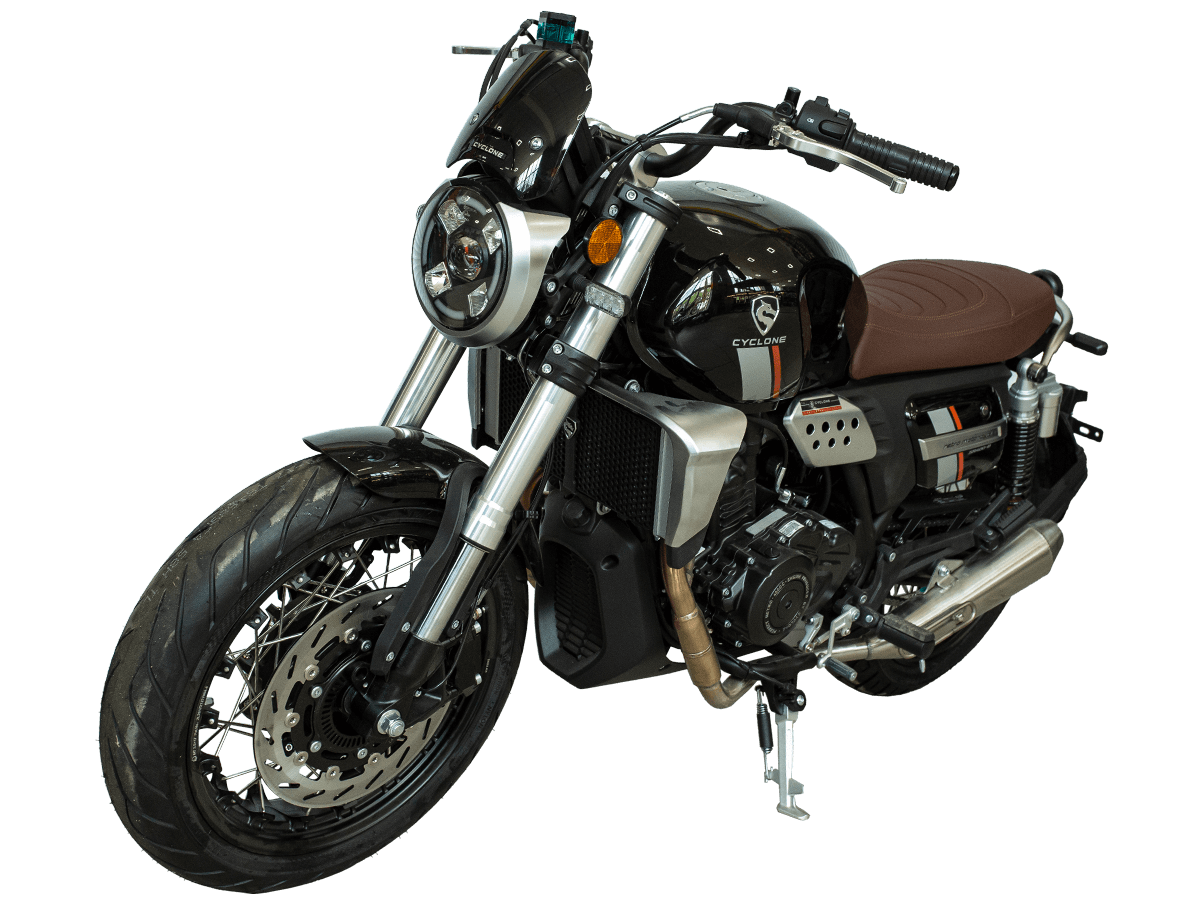 CYCLONE RE401 (SR400-B) 2024 – классик, в котором подчёркнутая простота объединяется с современными технологиями. Данная модель является более продвинутой версией модели RE3 (SR-400) – мотоцикл обладает более современным дизайном, снабжён стильными металлическими накладками на радиатор, а также топливным баком, объём которого увеличен до 20 литров.