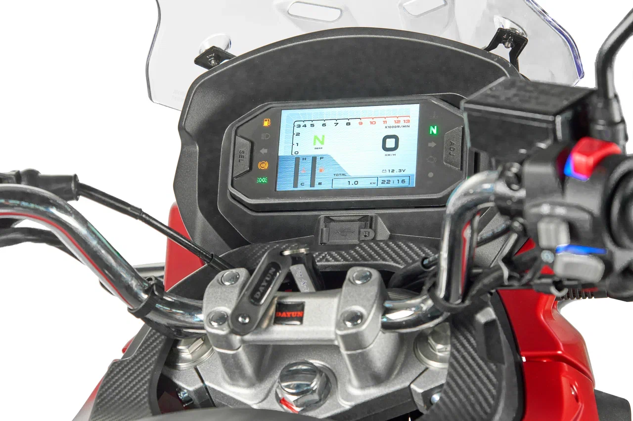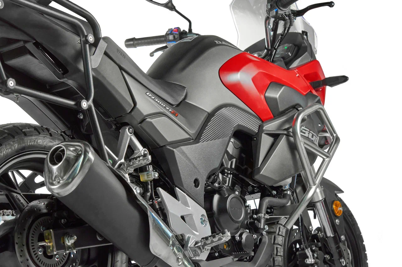Мощный и экономичный двигатель с инжектором Bosch: Сердце мотоцикла — 286-кубовый мотор с жидкостным охлаждением, выдающий 27 л.с. и 27,3 Нм крутящего момента. Система впрыска топлива Bosch EFI обеспечивает стабильную работу, низкий расход (всего 3,2 л/100 км) и мгновенный отклик на газ. Абсолютный контроль и безопасность: Телескопическая перевернутая вилка и регулируемый моноамортизатор гарантируют плавность хода, а дисковые тормоза с ABS — уверенное торможение в любых условиях. Литые диски и шины 110/70-17 спереди и 140/70-17 сзади обеспечивают отличное сцепление с дорогой. Удобство и готовность к любым поездкам: Эргономичная посадка с высотой 780 мм, 16-литровый бак и двухместное сидение делают DY300-XF идеальным выбором для ежедневных поездок и путешествий. Защита двигателя, задний багажник и полная комплектация — все для вашего комфорта и практичности.
