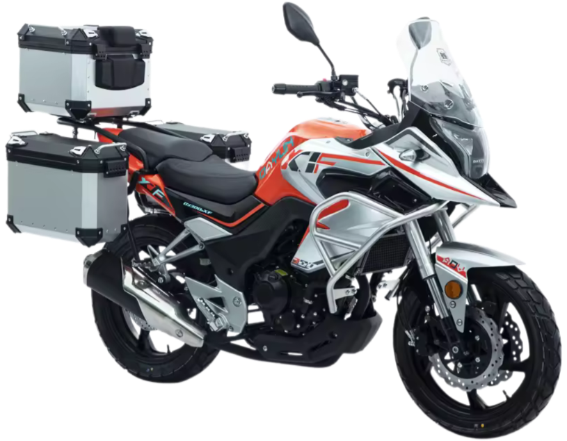Мощный и экономичный двигатель с инжектором Bosch: Сердце мотоцикла — 286-кубовый мотор с жидкостным охлаждением, выдающий 27 л.с. и 27,3 Нм крутящего момента. Система впрыска топлива Bosch EFI обеспечивает стабильную работу, низкий расход (всего 3,2 л/100 км) и мгновенный отклик на газ. Абсолютный контроль и безопасность: Телескопическая перевернутая вилка и регулируемый моноамортизатор гарантируют плавность хода, а дисковые тормоза с ABS — уверенное торможение в любых условиях. Литые диски и шины 110/70-17 спереди и 140/70-17 сзади обеспечивают отличное сцепление с дорогой. Удобство и готовность к любым поездкам: Эргономичная посадка с высотой 780 мм, 16-литровый бак и двухместное сидение делают DY300-XF идеальным выбором для ежедневных поездок и путешествий. Защита двигателя, задний багажник и полная комплектация — все для вашего комфорта и практичности.