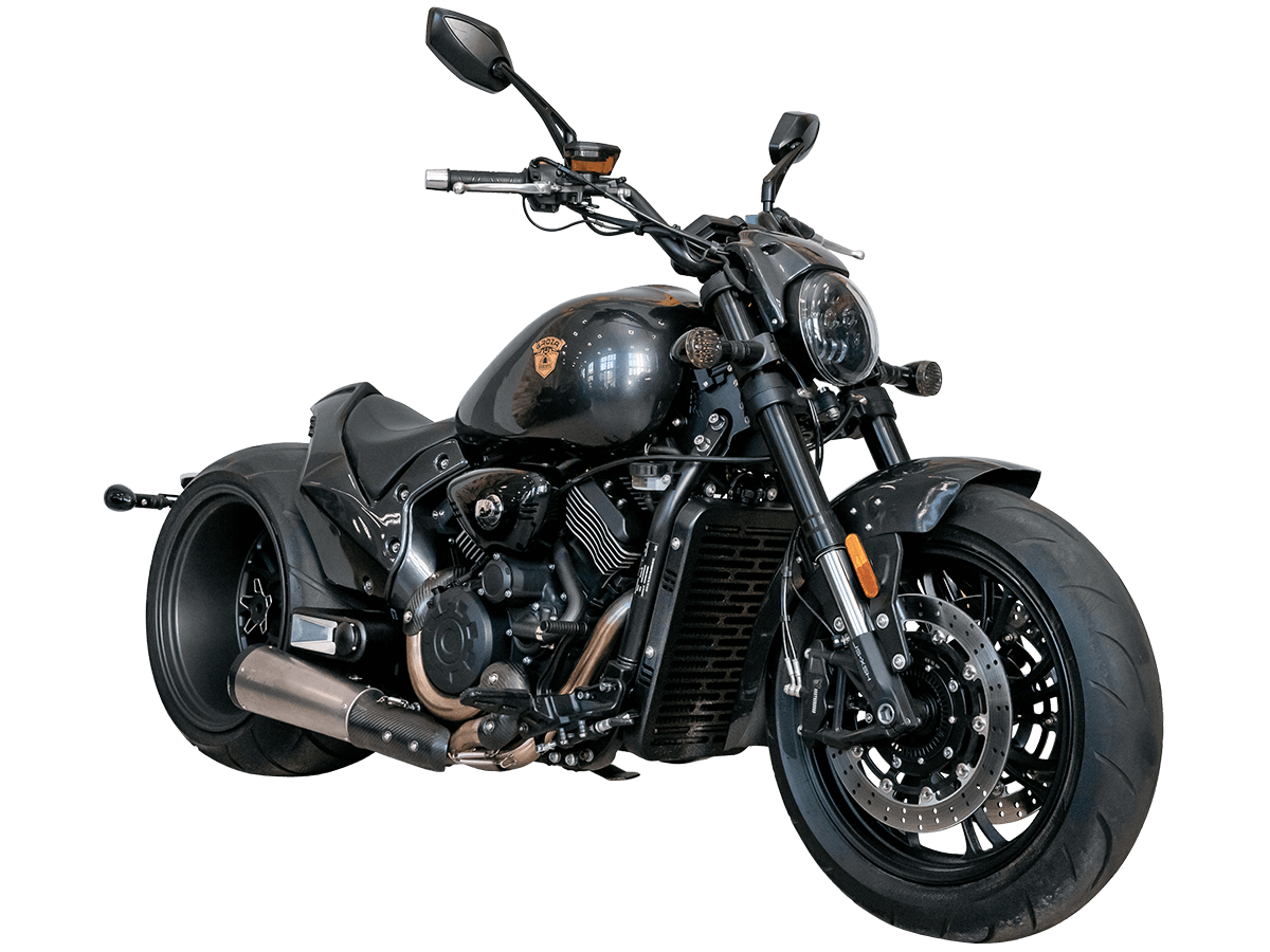 GROZA Wolverine 800 – ультимативный круизёр, который будто бы сошёл со страниц эксклюзивного каталога кастом-байков. Модель названа в честь росомахи – одного из самых свирепых, ловких и бескомпромиссных хищников в животном мире. Пилотируя этот байк, вы не имеете шанса остаться в потоке незамеченным. А в случае, если кто-то на светофоре решит посостязаться в дрэг-рейсинге, 800-кубовый V-твин и гигантская задняя покрышка не оставят преследователям никаких шансов.