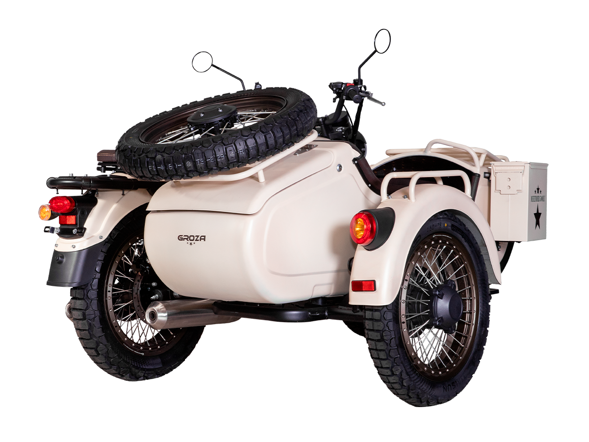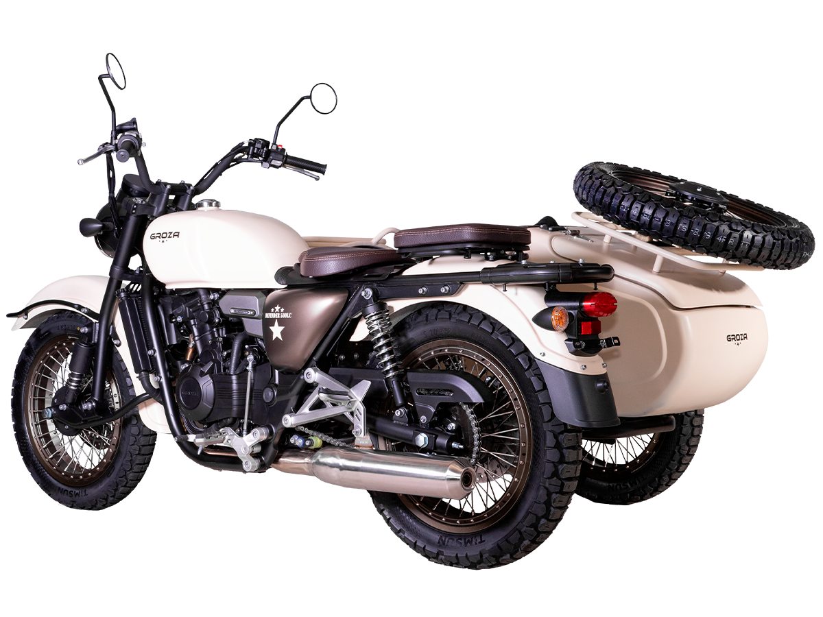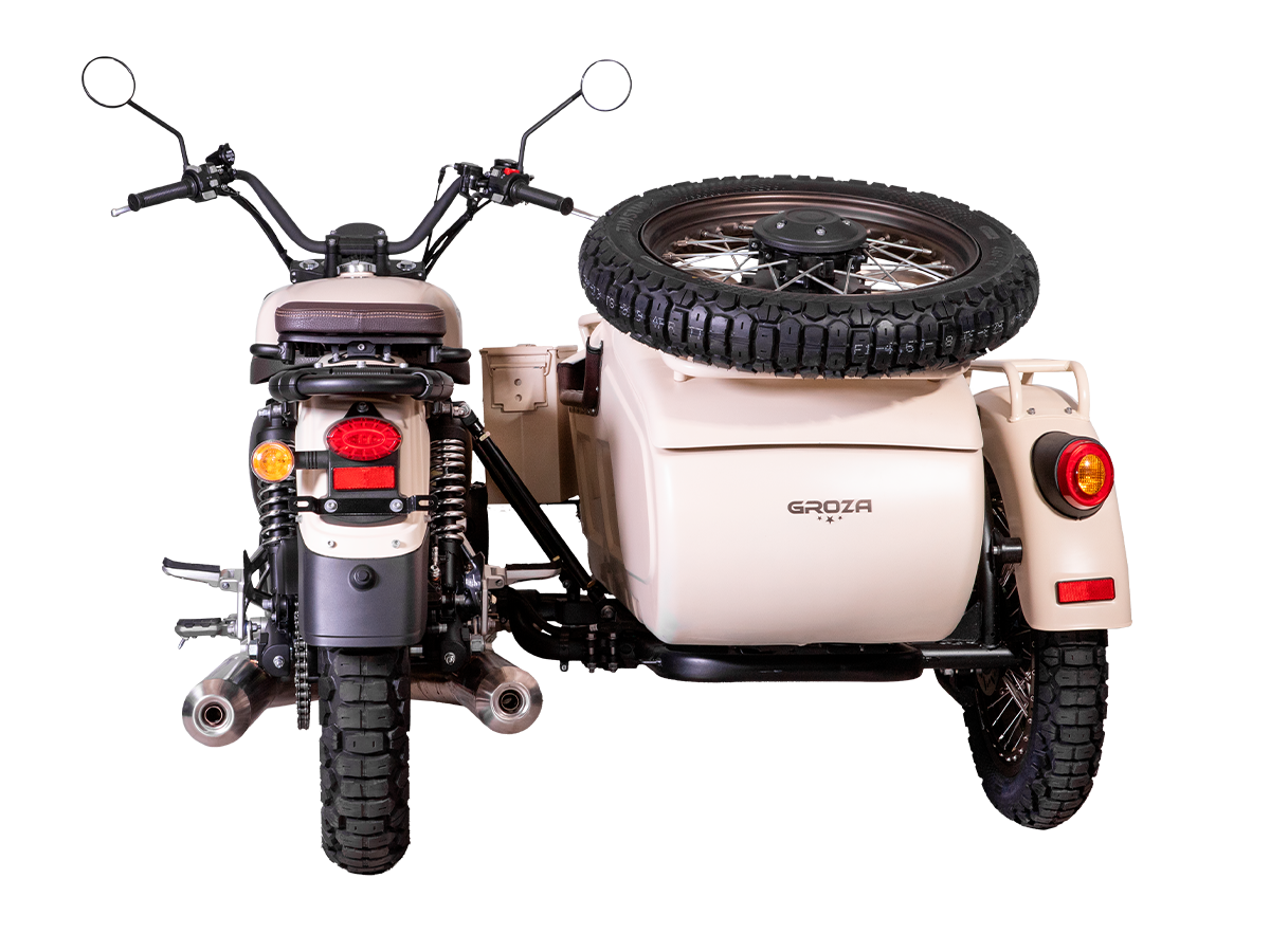 GROZA Defender 500 LC 4T EFI – легендарная модель, представляющая собой сайдкар в стиле ретро-милитари, и напоминающая культовый советский “Урал”. Байк оснащён изящными олдскульными фонарями и имеет покраску под фактуру некрашеного алюминия, как у истребителей 50-60 гг. Данная модификация является усовершенствованной моделью Defender 500 и оснащена гораздо более серьёзным мотором.